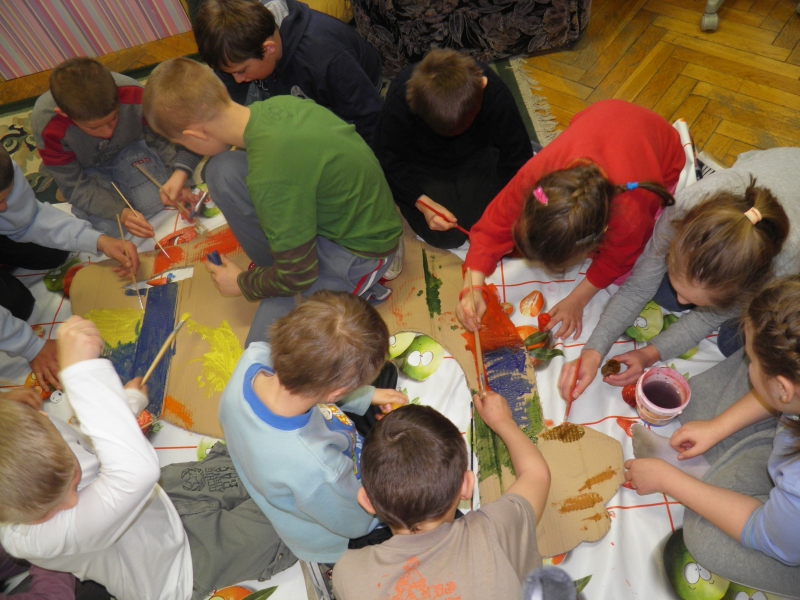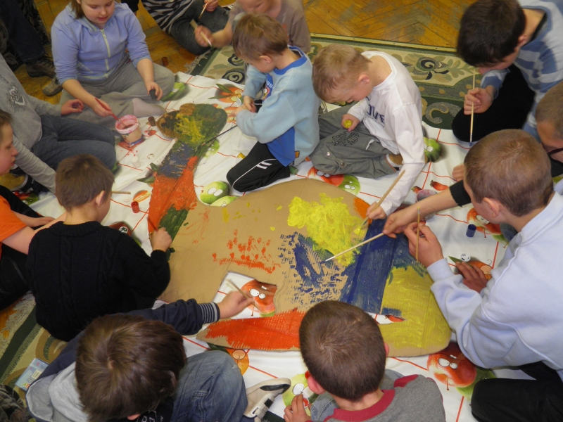 W czwartek mogliśmy odkryć w sobie pasję paleontologa-odkrywcy i ułożyć z kości prehistorycznego dinozaura. Mieliśmy też okazję zobaczyć jak wybucha wulkan i dowiedzieć się dlaczego tak się dzieje. Natomiast podczas długiej przerwy odkrywaliśmy w sobie plastyczne talenty. Bardzo podobał sie nam wybuch wulkanu!