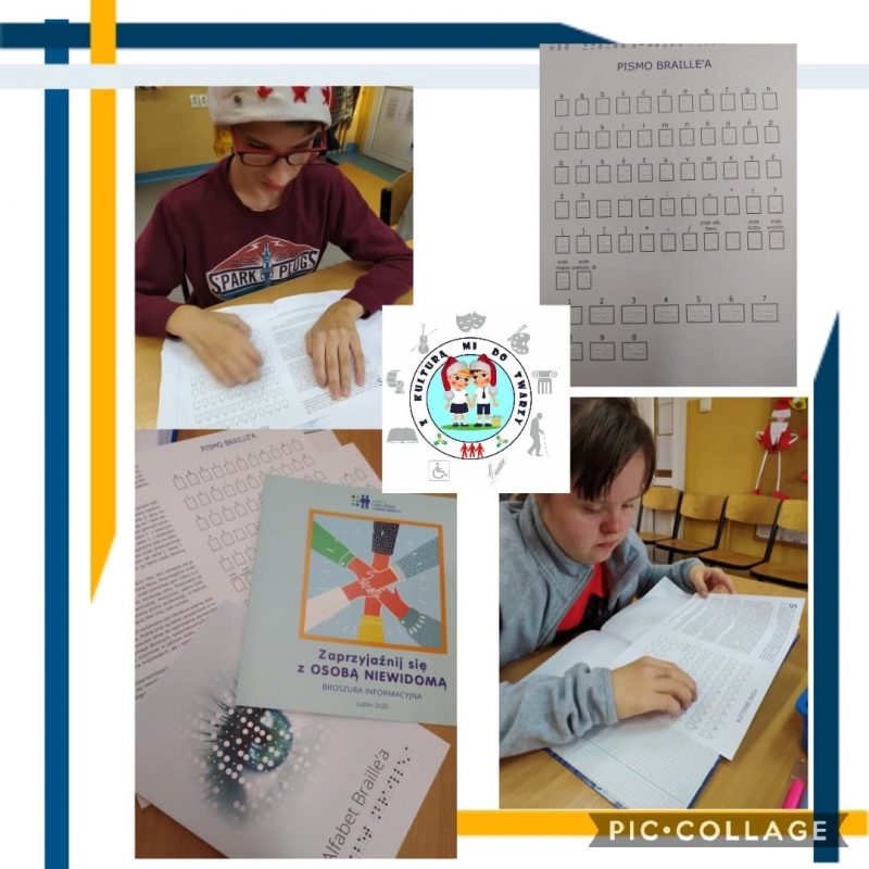 Dzięki Fundacji Świat Według Ludwika Braille’a poznaliśmy alfabet, którym posługują się osoby niewidome. Pani Magda nauczyła nas kilku słów w języku migowym, a pani Dominika przygotowała dla nas karty pracy z obrazkami- poznaliśmy ACC, czyli komunikację alternatywną i wspomagającą. Niektórzy z naszych koleżanek i kolegów ze szkoły właśnie tak komunikują się z otoczeniem. Obejrzeliśmy wzruszające filmy o niepełnosprawności- polecamy.
