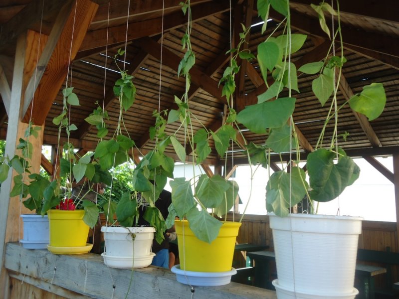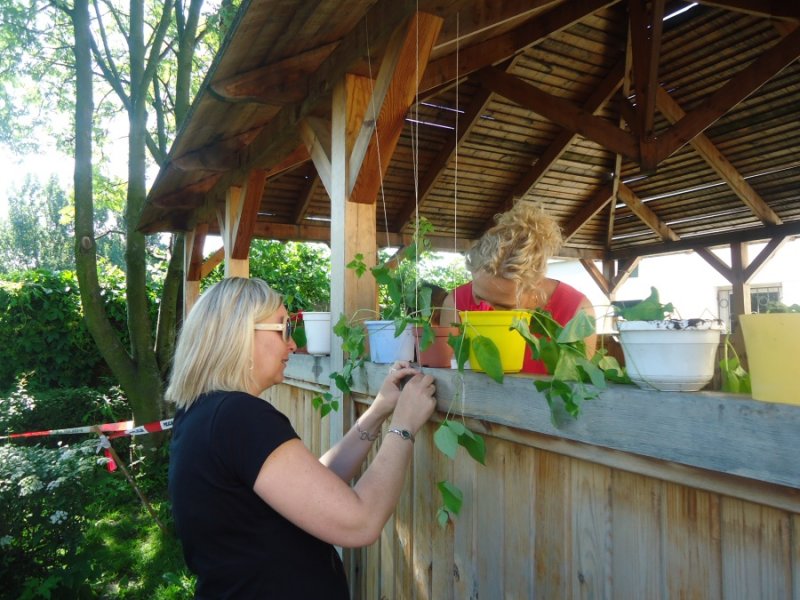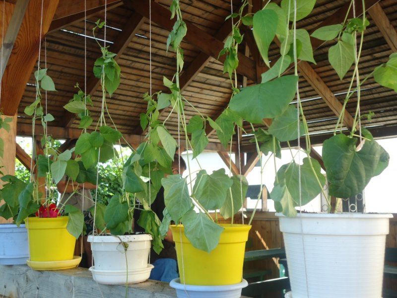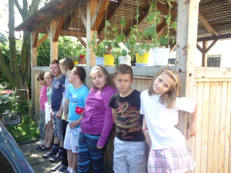 Niektóre fasolki rosły szybko inne wolniej i tu tkwi tajemnica najlepszych hodowców.Kiedy w klasach zabrakło miejsca dla pięknie rozwijających się roślinek uczniowie postanowili przenieść je do naszej szkolnej Eko-chatki .
