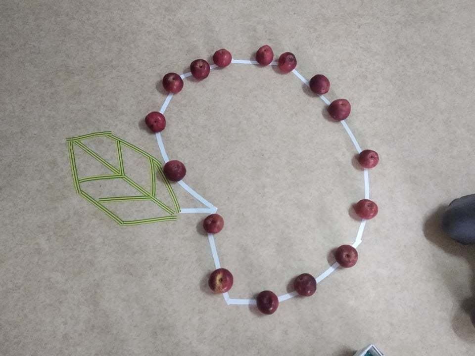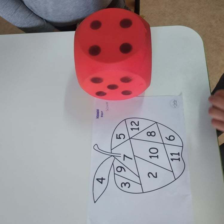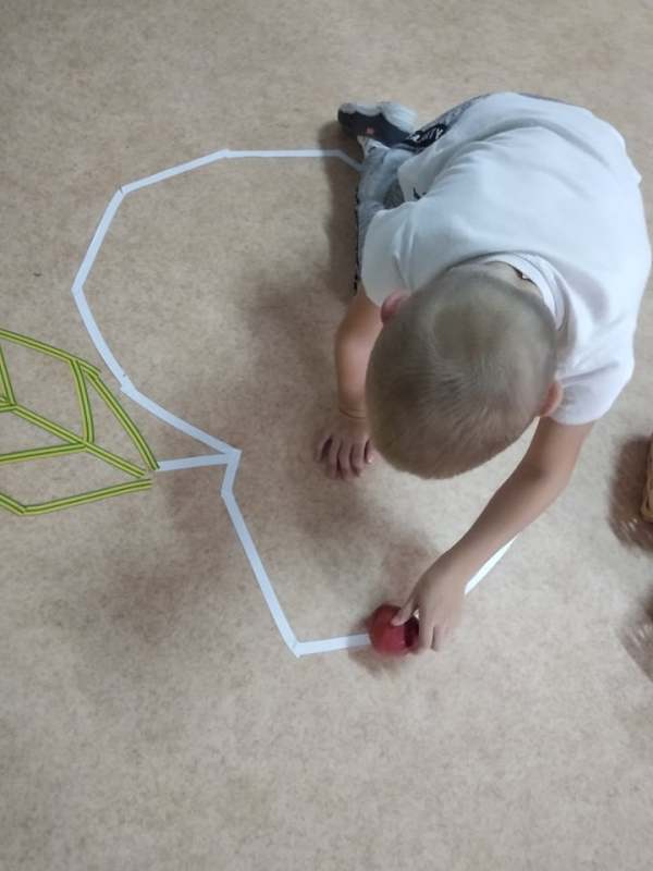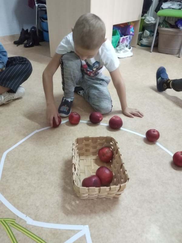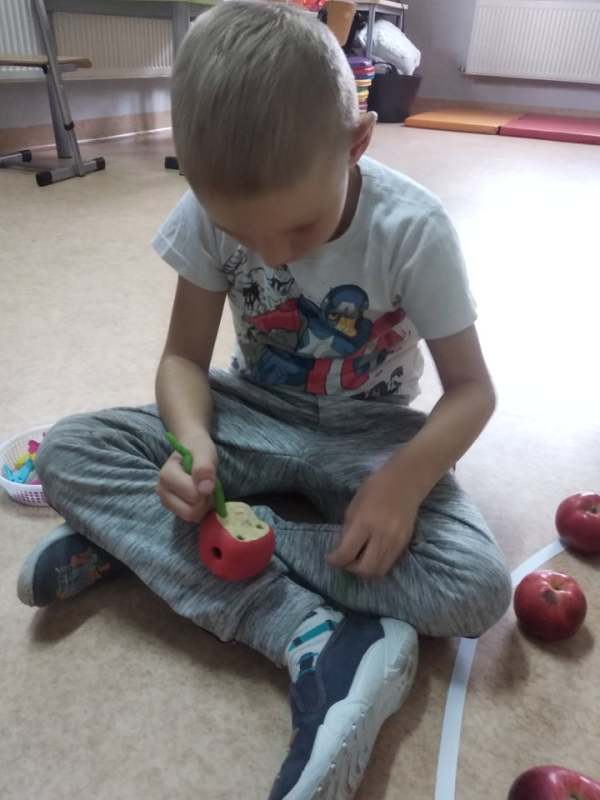 Dzieci poszukiwały, za pomocą latarek, jabłek w nocnym sadzie, ćwiczyły koordynację oko- ręka podczas toczenia owoców po konturach jabłka, usprawniały motorykę małą , nakładając klamerki na kontury jabłuszka, pomagając robaczkom przejść przez dziurkę w jabłku, doskonaliły umiejętności matematyczne podczas rzutów kostką i zamalowywaniu pola z odpowiednią cyfrą. Był  To było wyzwanie!