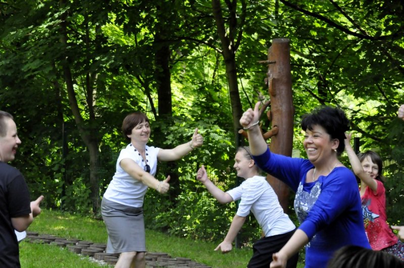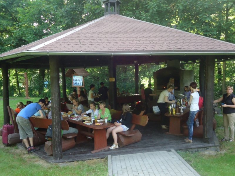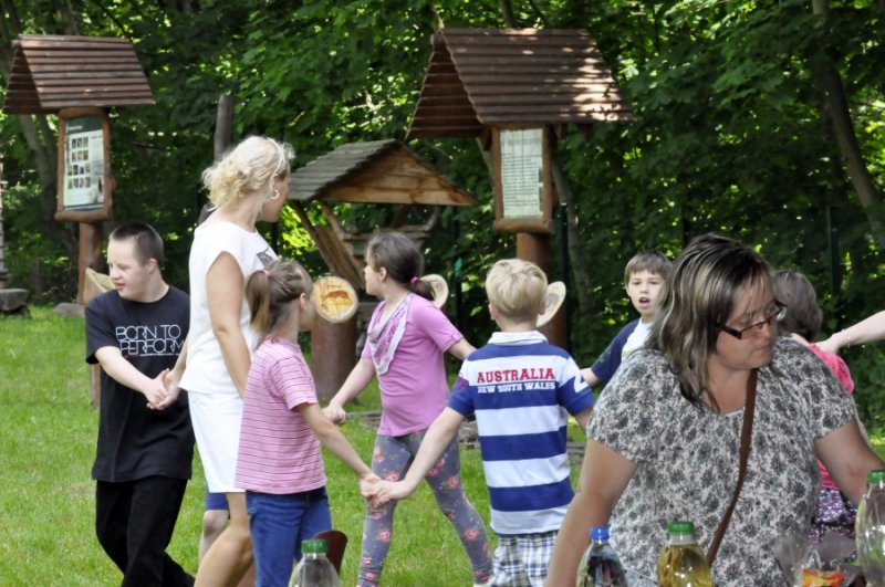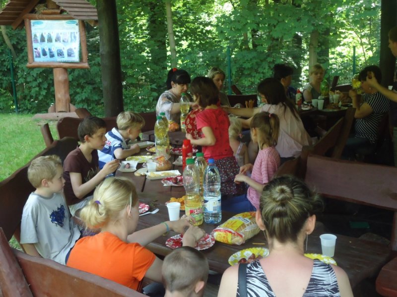 Nie zabrakło również wspólnych elementów tanecznych.W międzyczasie pojawiła się kiełbaska z grilla, chłodne i gorące napoje, a także słodycze. Zrobiliśmy sobie również wspólne pamiątkowe zdjęcie.Wpisaliśmy się także do pamiątkowej księgi Nadleśnictwa. Dzień był bezchmurny i słoneczny. Wszystkim dopisywały humory. Sponsorem naszej uroczystości było nasze Stowarzyszenie „Odnaleźć siebie”, które przekazało nam na ten cel środki finansowe.