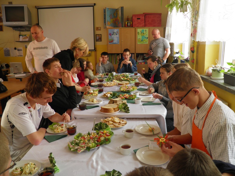 11 kwietnia w naszej szkole, po raz pierwszy odbył się Festiwal Kulinarny pod hasłem „ Wiosenne częstowanie zdrowiem.” Uczestnicy festiwalu przyjechali do nas z Wojcieszowa, Szklar, Jawora i Legnicy. Głównym zadaniem było przygotowanie wariacji na temat znanej i zdrowej potrawy lub stworzenie zupełnie nowej wedle własnego pomysłu. Można było do woli eksperymentować. Łączyć przeróżne składniki, inspirować się kuchnią regionalną lub egzotyczną. Wszystko zależało od wyobraźni, która nie zawiodła naszych uczestników. Było smacznie i zabawnie. Zdrowo i różnorodnie. Wiosennie i kolorowo. Bawiliśmy się wyśmienicie, mamy nadzieję, że ta forma imprezy na stałe zagości w naszym Ośrodku.