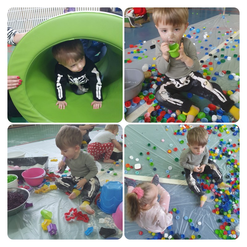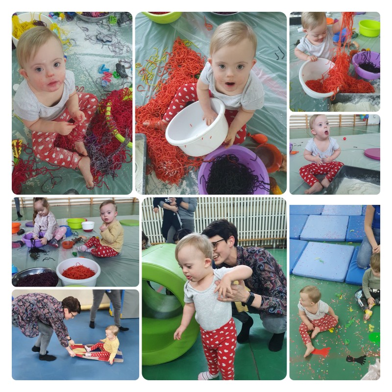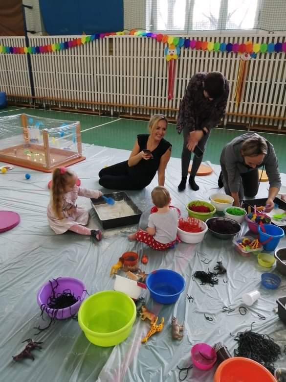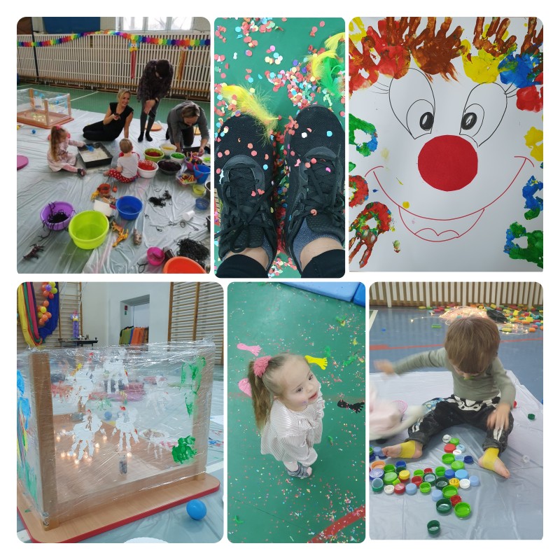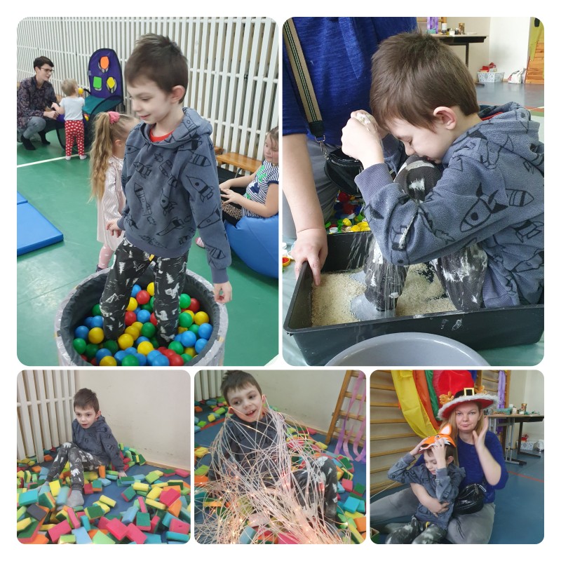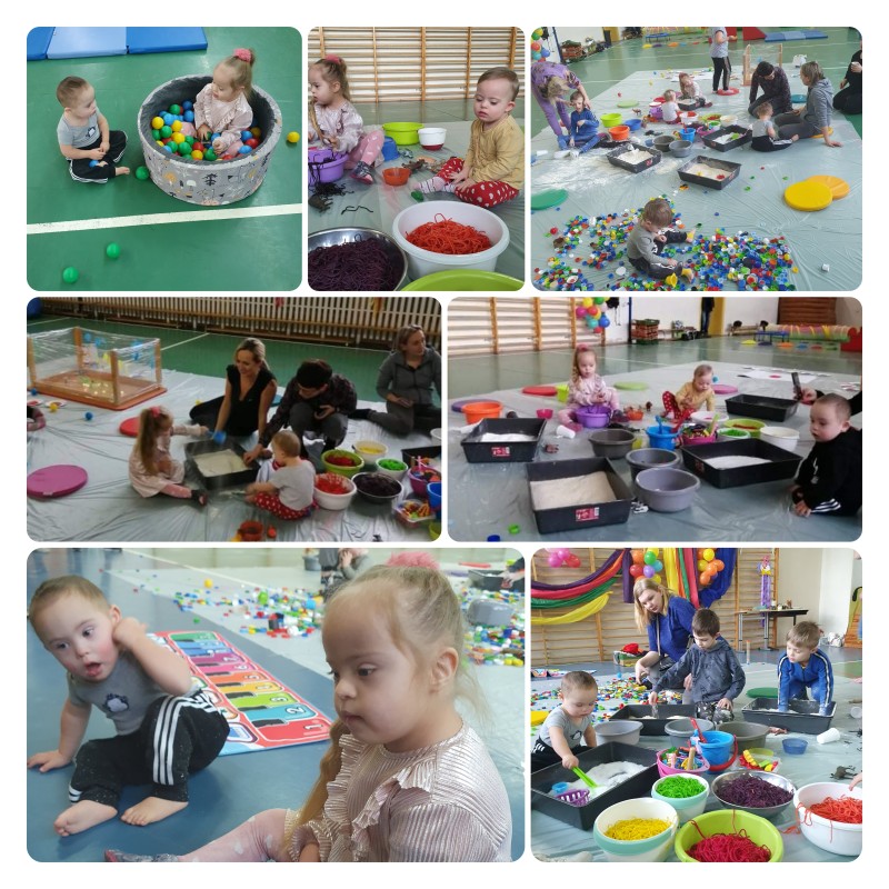 W tym tygodniu odbyły się karnawałowe warsztaty „Sensoplastyka i gimnastyka dla smyka”, dla dzieci i rodziców z wczesnego wspomagania rozwoju. To było bardzo przyjemne, radosne i kolorowe spotkanie. ” Legalne brudzenie” w kolorowym makaronie, ryżu, mące, barwnikach, poznając przy tym różne faktury i konsystencje przyniosło wszystkim ogrom szczęścia. Wspaniały również okazał się tor przeszkód z trampoliną, ścieżkami sensorycznymi, tunelami i basenem z kolorowymi piłeczkami. Sympatycznie i miło będziemy wspominać te warsztaty i wspólnie spędzony czas!