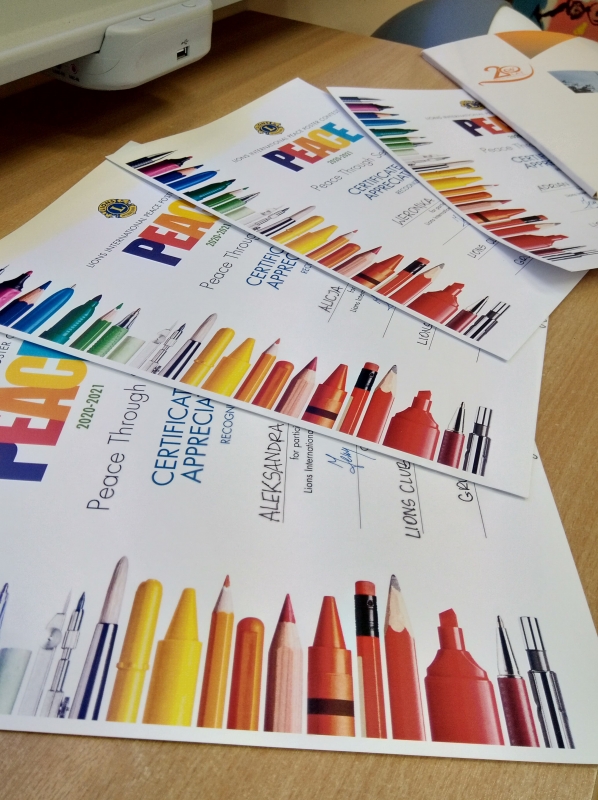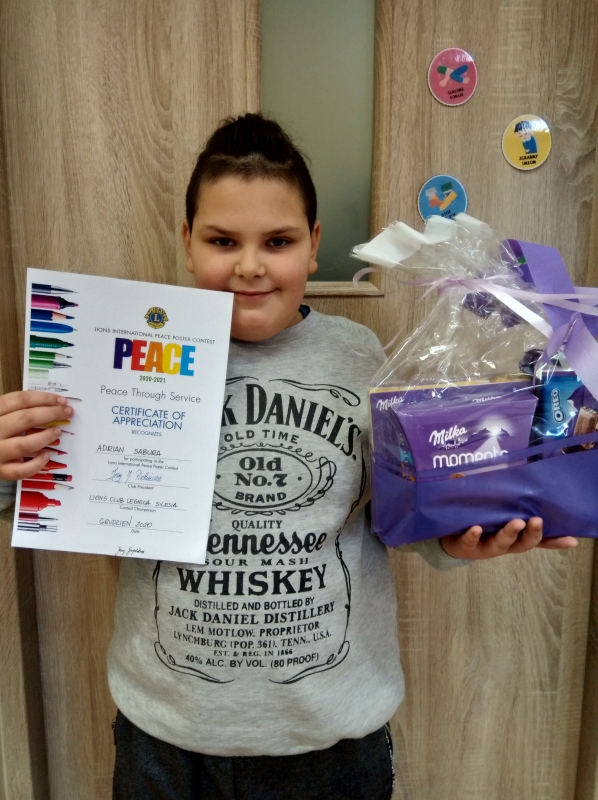 Uczniowie z klas 5a i 7b wzięli udział w konkursie plastycznym organizowanym przez Lions Club. Temat konkursu był niezwykle wdzięczny – Wspieramy pokój. Zanim uczniowie przystąpili do tworzenia plakatów, zapoznali się z definicją pokoju na świecie, opowiedzieli jak go rozumieją, podali przykłady przewodniego motywu konkursu. Najczęstszymi określeniami rozumienia pokoju na świcie były: tolerancja, spokój, akceptacja, dobroć, miłość.