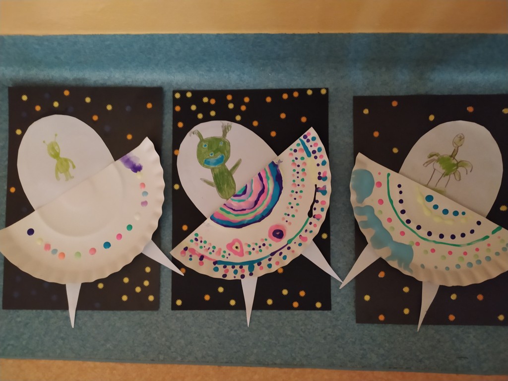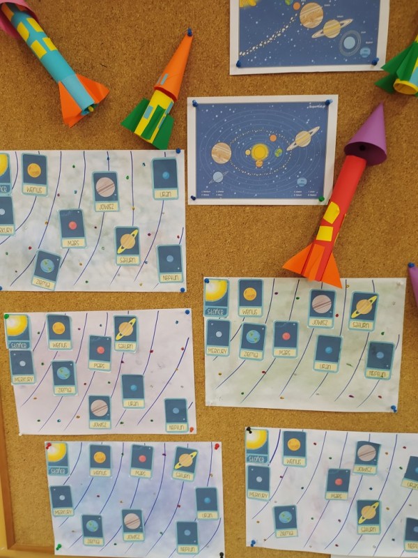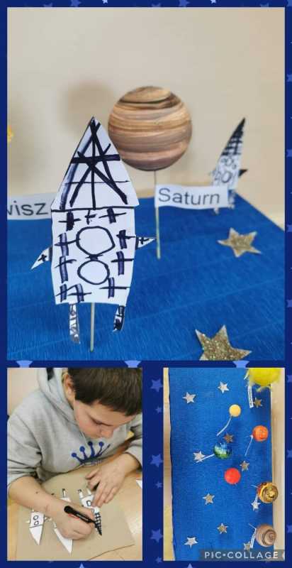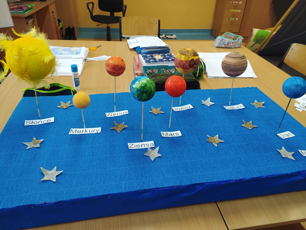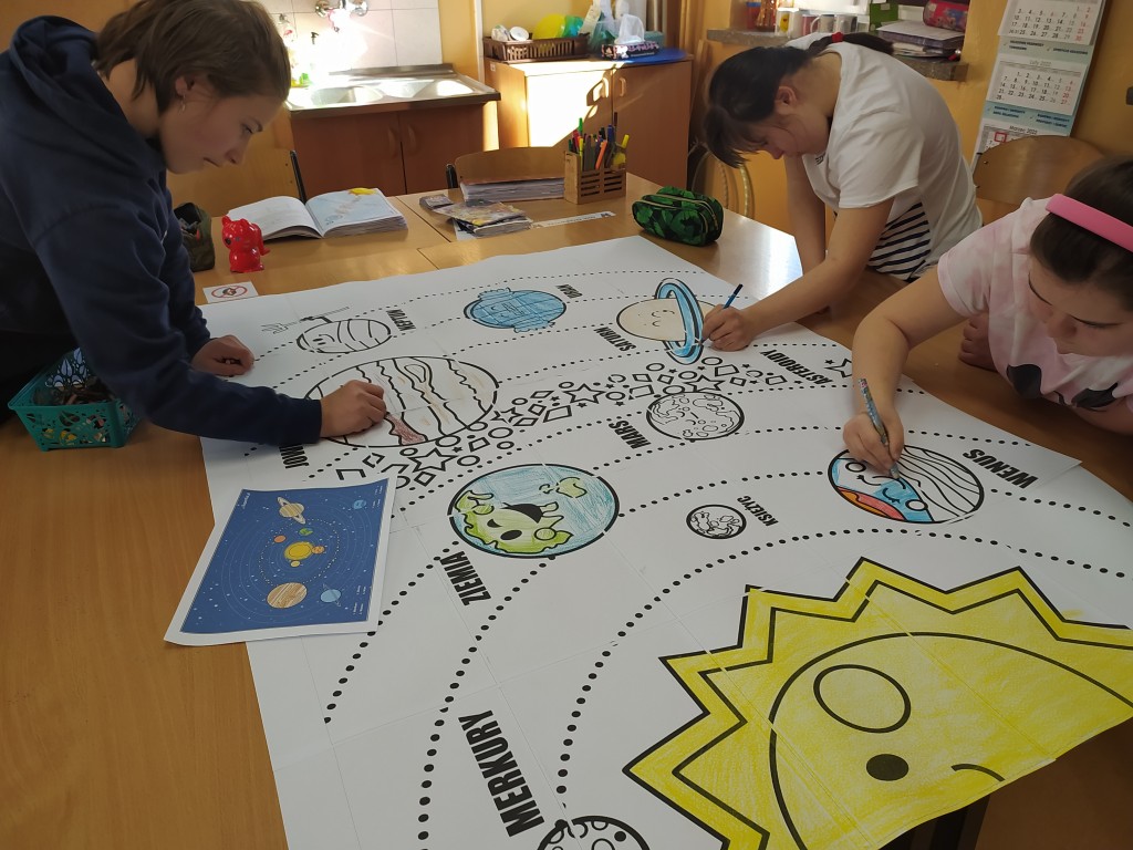Jakie tajemnice kryje Wszechświat? Czy na Wenus jest życie? Jak daleko jest Księżyc? Odpowiedzi na te, jak i na wiele innych pytań związanych z kosmosem poszukiwali w tym tygodniu uczniowie klasy 4-6a oraz 6c-7a. Początkujący astronauci poznali m.in. nazwy wszystkich planet, ich rozmieszczenie w Układzie Słonecznym, zapoznali się z postacią słynnego Mikołaja Kopernika . Na zajęciach nie zabrakło oczywiście dawki kreatywności – uczniowie zaprojektowali i przymierzyli strój najprawdziwszego astronauty, samodzielnie stworzyli makietę Układu Słonecznego, zbudowali rakiety oraz ułożyli ogromne puzzle przedstawiające kosmos. Ciekawość uczniów obejmująca tygodniowy temat była niemal tak ogromna jak nasz Wszechświat!!!