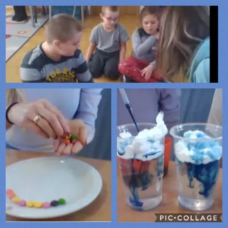 Dzisiaj, 5 listopada, uczniowie klas 1-3a, 4-5a i 6a wzięli udział właśnie w takim spotkaniu. Były wspólne pląsy, rozpoznawanie zjawisk atmosferycznych, doświadczenia związane z pogodą i każdy wykonał z pomocą rodzica pracę plastyczną- Jesienne drzewo.
