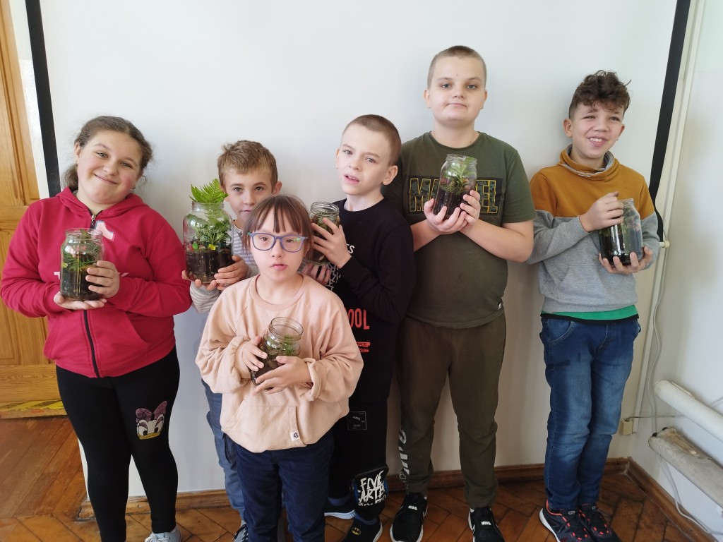 Na zajęciach w tym tygodniu uczniowie klasy 4-6 d oraz 4a rozmawiali o lesie. Poznali jego budowę. Wiedzą już, że poszczególne warstwy lasu to: runo leśne, podszyt i najwyższa – korony drzew. Dziś, z zebranych wcześniej darów jesieni, przygotowali las w słoiku!!! Do czystego słoika wkładali warstwami: kermazyt, węgiel aktywny, ziemię, roślinki oraz różnego rodzaju ozdoby – kamyczki, szyszki, kasztany. Wyszły im cudowne prace, zobaczcie sami!!!