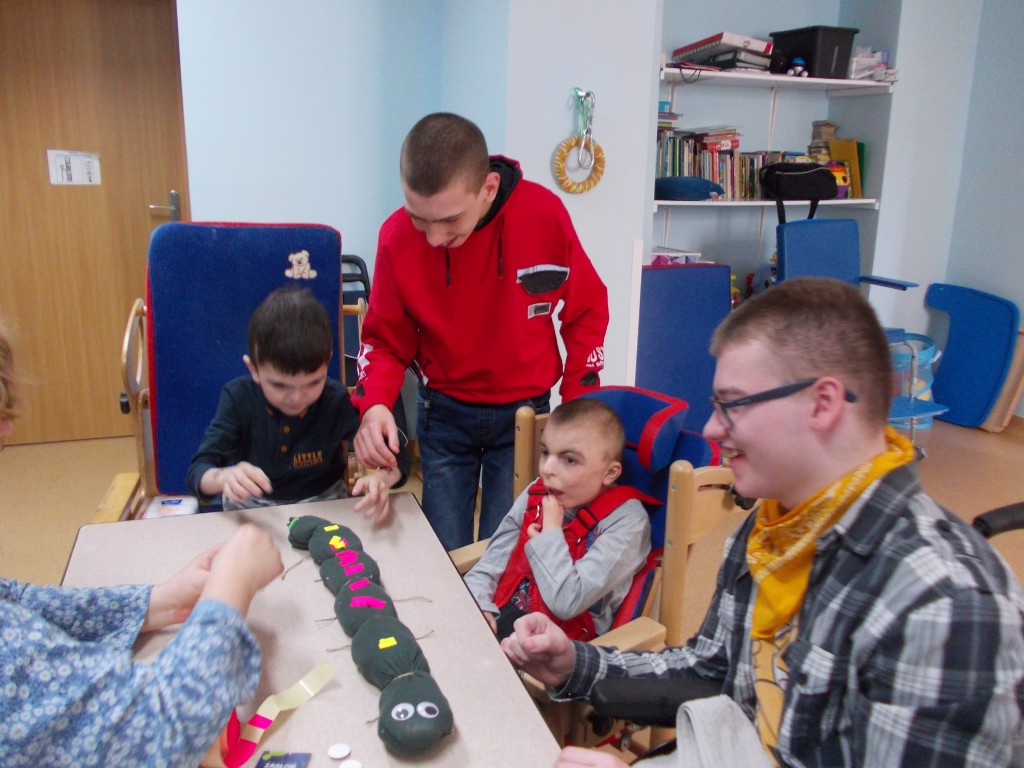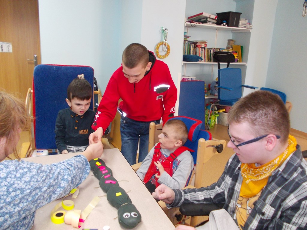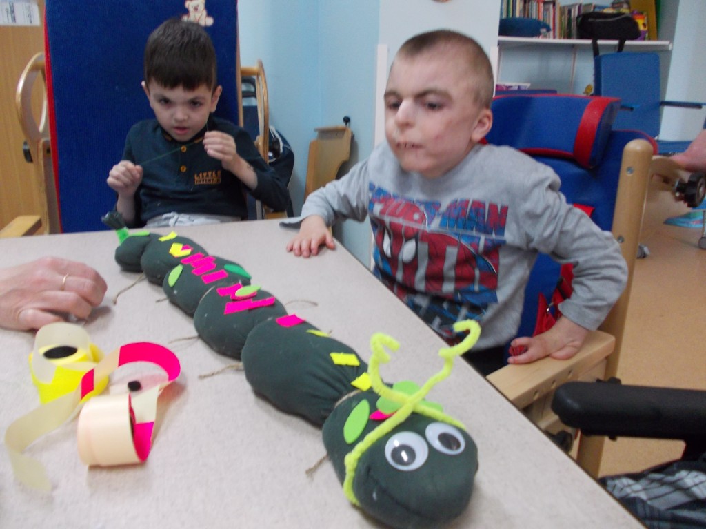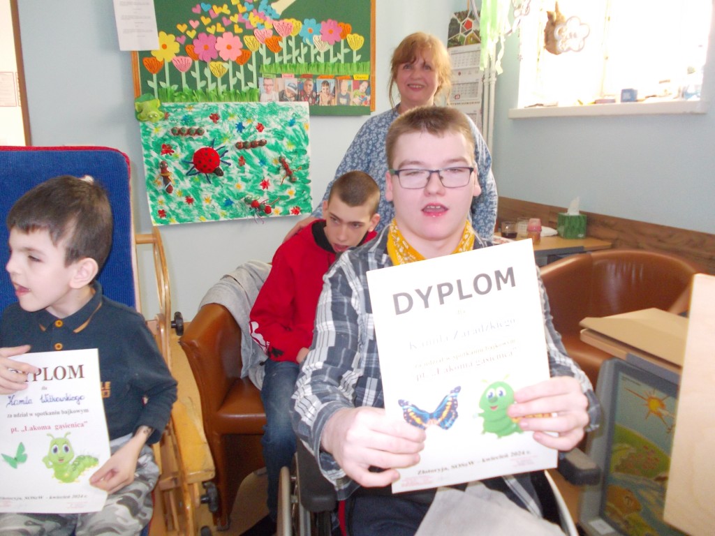 30 kwietnia w zespołach rewalidacyjnych w LO odbyło się kolejne spotkanie bajkowe z teatrzykiem Kamishibai, realizowanie przez Zespół nauczycieli ds. jakości zajęć terapeutycznych. Piękne opowiadanie o Magicznej gąsienicy wzbudziło ciekawość dzieci, które dowiedziały się, że mały, niepozorny robaczek może zamienić się w pięknego motyla. Na zajęciach plastycznych wspólnie z paniami dzieci zrobiły bajkową gąsienicę, która wzbogaciła piękną, wiosenną gazetkę wyeksponowaną w sali terapeutycznej. Uczniowie otrzymali dyplomy i drobne słodkości.