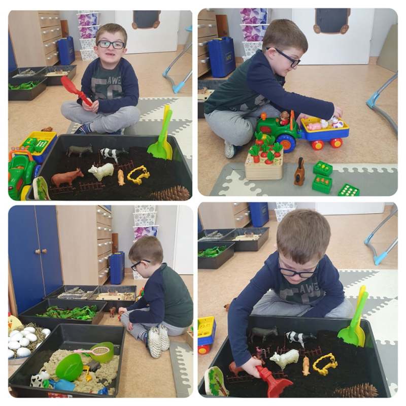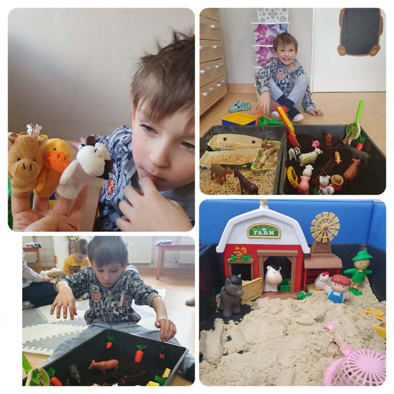 Na ostatnich zajęciach wczesnego wspomagania rozwoju nasze najmłodsze dzieciaczki, przeniosły się do wiejskiej zagrody. Była farma, zwierzęta, traktor i jak to na wsi bywa pachnące zioła i sensoryczna ścieżka. Dzieci pobudzały swoje zmysły, doskonaliły motorykę małą i koordynację, a wszystko to w atmosferze radości i zabawy.