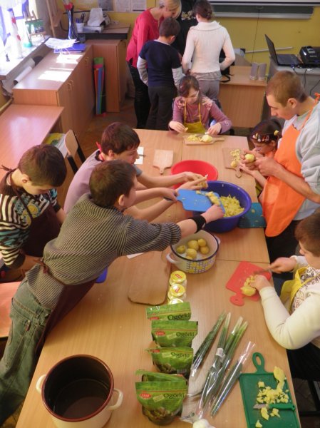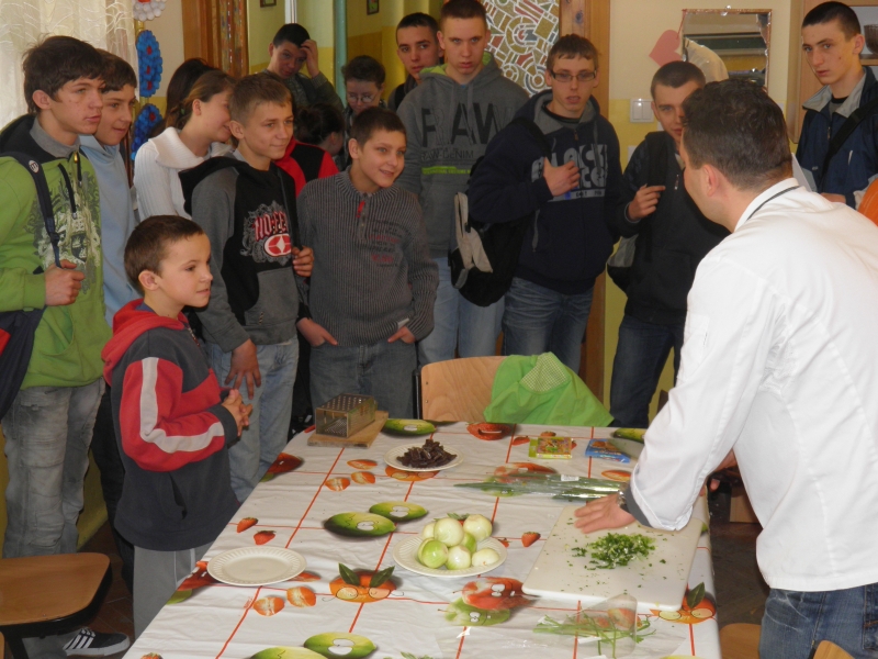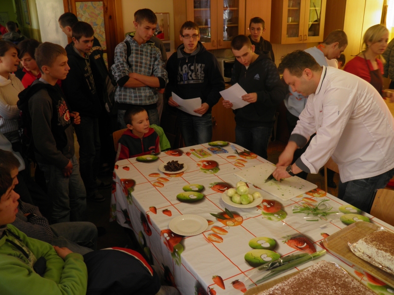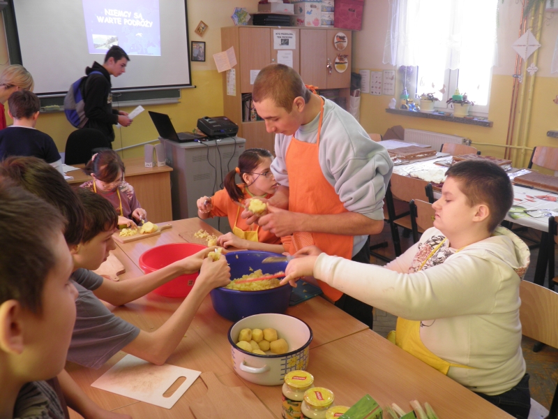 W środę, pod okiem szefa kuchni z hotelu Qubus w Złotoryi  odkrywaliśmy swoje pasje kulinarne .Wspólne przyrządzaliśmy jedzonko z mistrzem. W dziedzinie gotowania były to dla nas niezapomniane doznania .W trakcie warsztatów poznaliśmy tajniki przyrządzania, gotowania, dekorowania oraz podawania potraw. W dniu tym także obchodziliśmy „ Dzień Niemiecki”.  Mieliśmy okazję poznać ten kraj wszystkimi zmysłami. Odbyły się quizy,były zagadki i konkursy. Było fajnie!