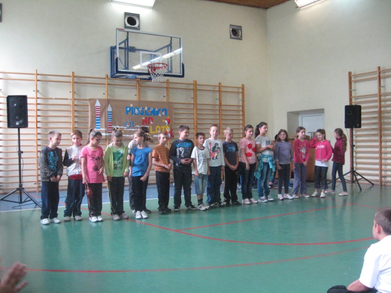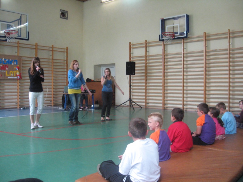 W dniu 22 czerwca spotkaliśmy się u nas z zaprzyjaźnionymi uczniami dwóch szkół – tradycyjnie już ze Szkołą Podstawową Nr1 w Złotoryi oraz po raz pierwszy w naszej szkole gościł Zespół Placówek Specjalnych z Legnicy. Piosenka na lato – taki był tytuł ostatniej w tym roku uroczystości szkolnej na którą przybyli nasi przyjaciele. Ze względu na niesprzyjającą aurę zaplanowana impreza muzyczna odbyła się w sali gimnastycznej. Podczas występów pojawiły się wykonania uczniów różnych piosenek różnych wykonawców – polskich i zagranicznych. Piosenki były przeplatane tańcem. W międzyczasie przygotowano przyniesione przez uczniów kiełbaski na ognisko, które zostały upieczone w piekarniku. Wszyscy fantastycznie się bawili. Nawiązały się nowe znajomości, odnowiły stare. Myślę, że w nowym roku szkolnym zorganizujemy podobną imprezę .