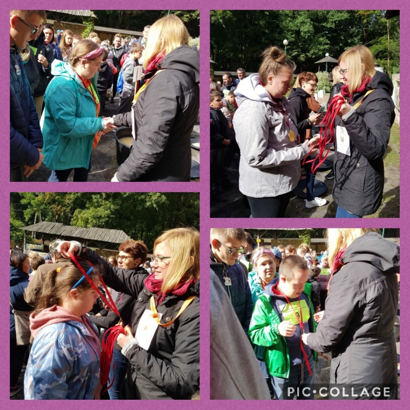 Oczywiście dodatkowych atrakcji dla nas nie brakowało. Od paru dni przygotowywaliśmy się do zabawy- ćwiczyliśmy układy taneczne i zabawy, do których zaprosiliśmy wszystkich uczestników mistrzostw. Dla artystycznych dusz była możliwość zaprezentowania swojego talentu- malowanie na folii. Dużą popularnością cieszyła się foto budka, w której mogliśmy zrobić sobie śmieszne zdjęcie z kolegą. W przyszłym roku też tam będziemy i mamy nadzieję wypłukać jeszcze więcej złota 🙂
