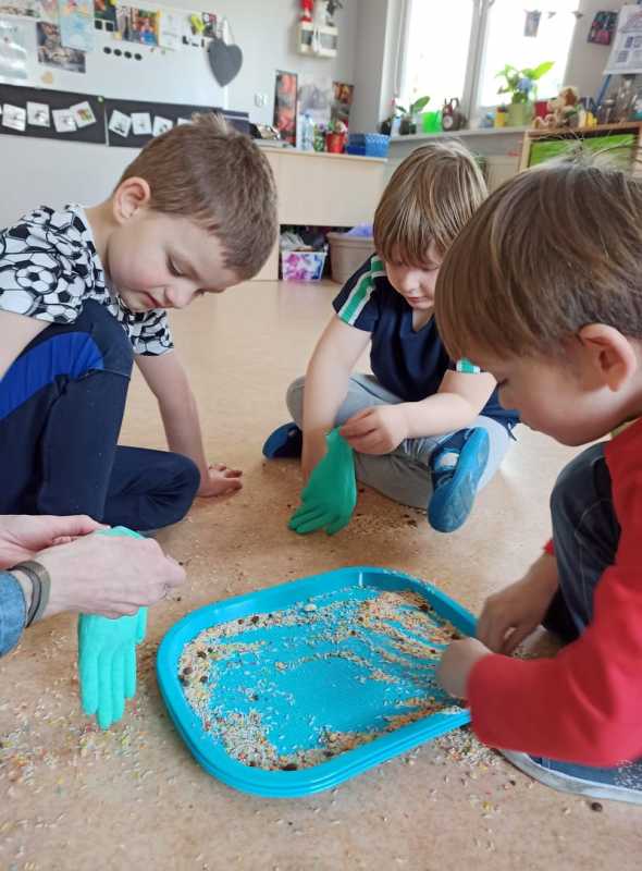 Nauka poprzez zabawę, doświadczanie świata wszystkimi zmysłami, zajęcia z elementami terapii ręki, integracji sensorycznej, arteterapii – to codzienność naszych przedszkolaków. W ten sposób poznają bliższe i dalsze otoczenie, prawa rządzące światem przyrody, nawiązują relacje z rówieśnikami, stają się bardziej samodzielni. Wszystko po to, aby w pełni przygotować ich do dalszej nauki. Chcemy, by nasi najmłodsi, byli w przyszłości odważnymi i szczęśliwymi ludźmi!