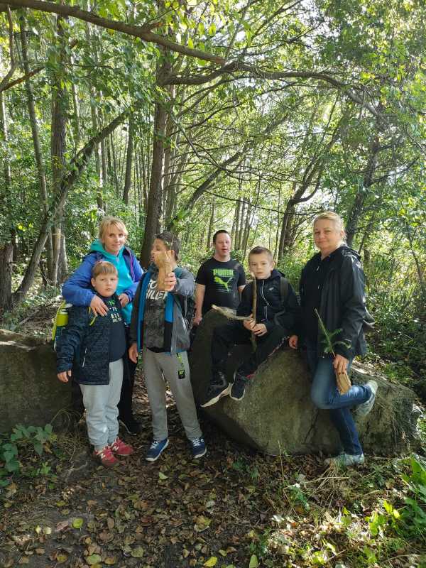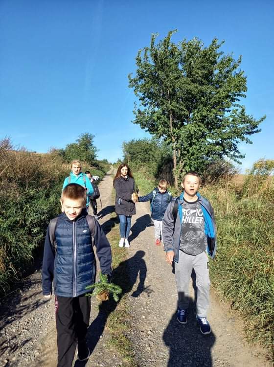Piękna, słoneczna pogoda zachęciła uczniów klas 1-3 c oraz III a pp do uczestniczenia w pieszym Rajdzie Jesiennym. Zebraliśmy się pod szkołą i wyruszyliśmy polną drogą w stronę Stawu Osadowego. W czasie rajdu podziwialiśmy piękno lasów w jesiennych barwach, obserwowaliśmy owady i rośliny leśne. Pieszą wędrówkę połączyliśmy także z posadzeniem sadzonek jodły i świerka, które otrzymaliśmy od Nadleśnictwa Złotoryja. Z całą pewnością możemy stwierdzić, że wspólnie spędzony aktywnie czas na świeżym powietrzu zintegrował nas jeszcze bardziej.