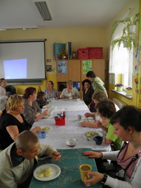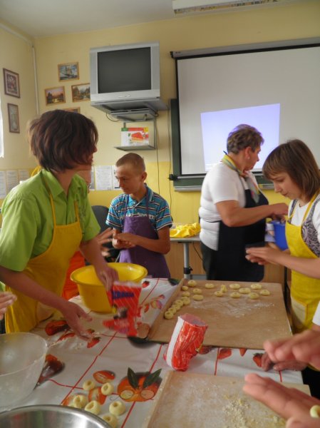 W ramach propagowania akcji „ Rodzice są z nami” do naszego Ośrodka tłumnie przybyło liczne grono rodziców, aby wraz ze swoimi pociechami eksperymentować w gotowaniu. Kuchnia, to wyjątkowe laboratorium , w którym nasi uczniowie pod przewodnictwem swoich bliskich mogli poznawać świat jedzenia i badać go wszystkimi zmysłami, czyli to co „tygryski” lubią najbardziej – dotykać, obserwować, wąchać, smakować, słuchać. Rodzice wraz z dziećmi stworzyli „ Mmmmm, wyśmienite” kluski śląskie. Okazało się , że wspólne gotowanie to nie tylko dobra zabawa i ciekawy sposób spędzenia wolnego czasu. To przede wszystkim działanie o dużym znaczeniu wychowawczym i emocjonalnym. Rodzice przebywając z dziećmi zyskali możliwość poznania, obserwowania nowych aspektów osobowości własnych dzieci. To spotkanie uzmysłowiło i pozwoliło nam wszystkim odkryć fakt, że wśród zagniatanych ciast i patelni można się rozwijać, bawić, i co najważniejsze dzielić ze sobą wspólne chwile.