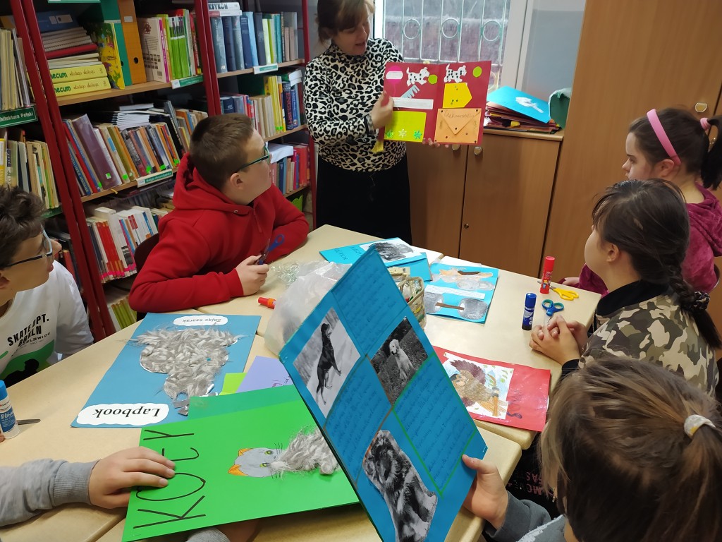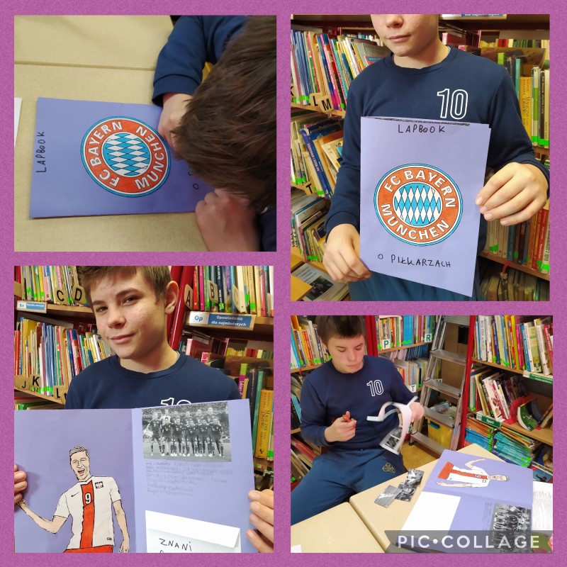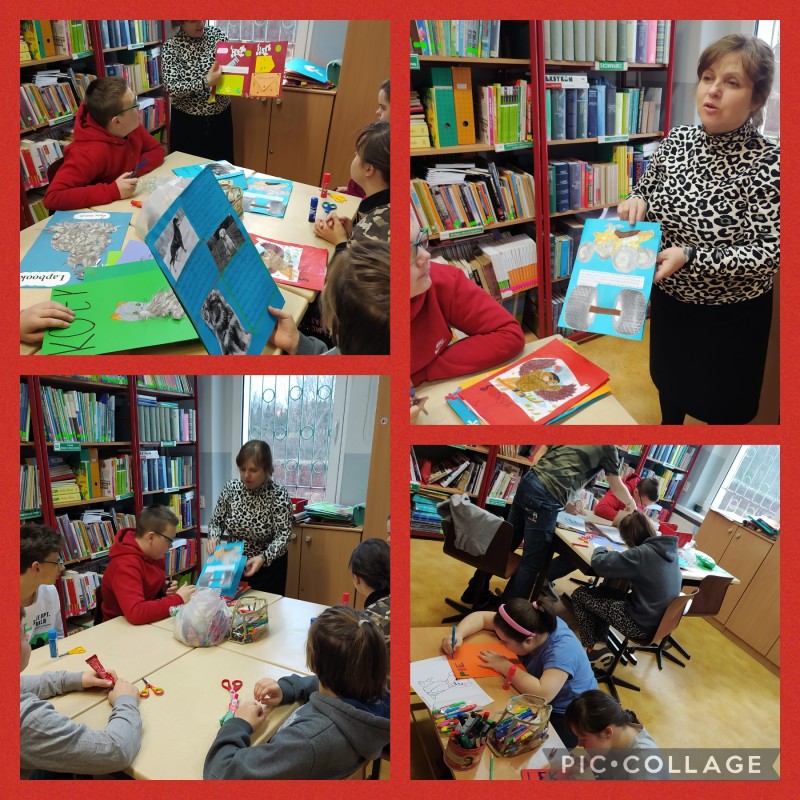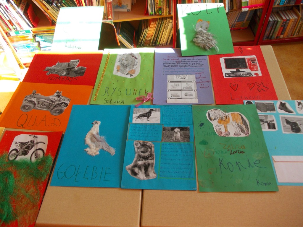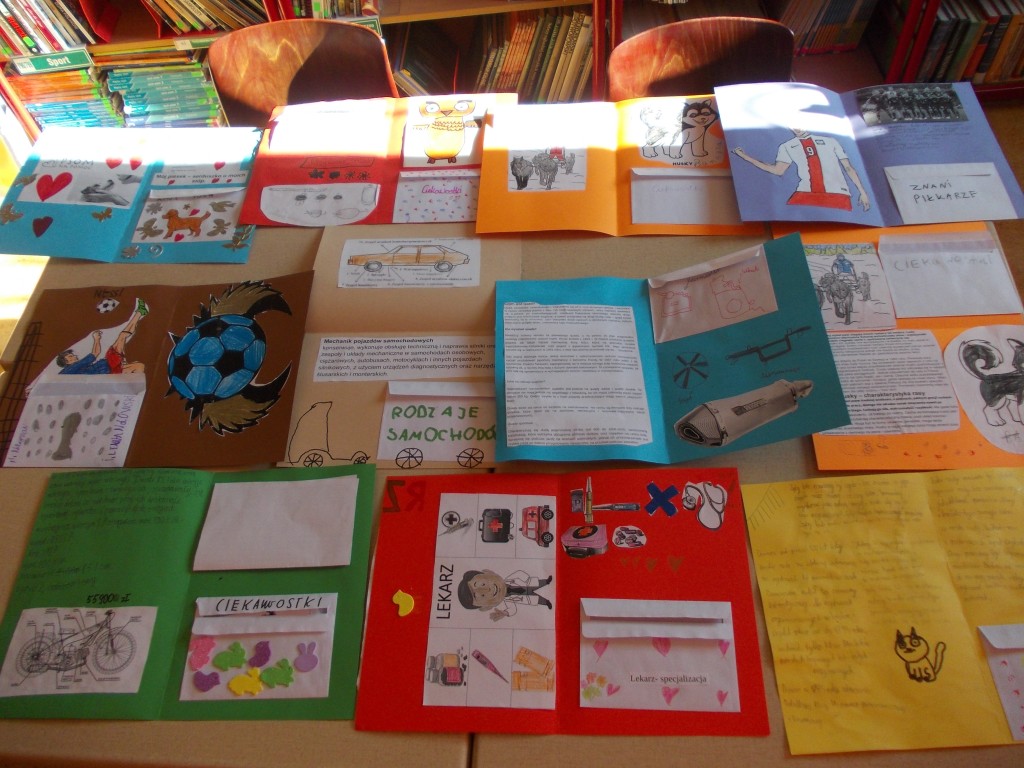 W bibliotece szkolnej na lekcjach bibliotecznych, uczniowie mogą rozwijać swoje zainteresowania, korzystając z bezpośrednich źródeł informacji, takich jak: książki, czasopisma, Internet. Jednym z atrakcyjnych sposobów rozwijania swoich pasji jest wykonanie książeczki informacyjnej, tzw. Lapbooka, przy użyciu dowolnych technik plastycznych. Uczniowie klasy 6 i 7 a, pani Lucynki mogli zaprezentować swoje pasje, wykonując przepiękne prace. Znalazły się tu książeczki o: ulubionych zwierzątkach domowych, sporcie, motoryzacji, o zawodzie lekarza. Uczniowie swoje prace wykonali z niezwykłą starannością. Książeczki są podziwiane i czytane przez inne klasy.