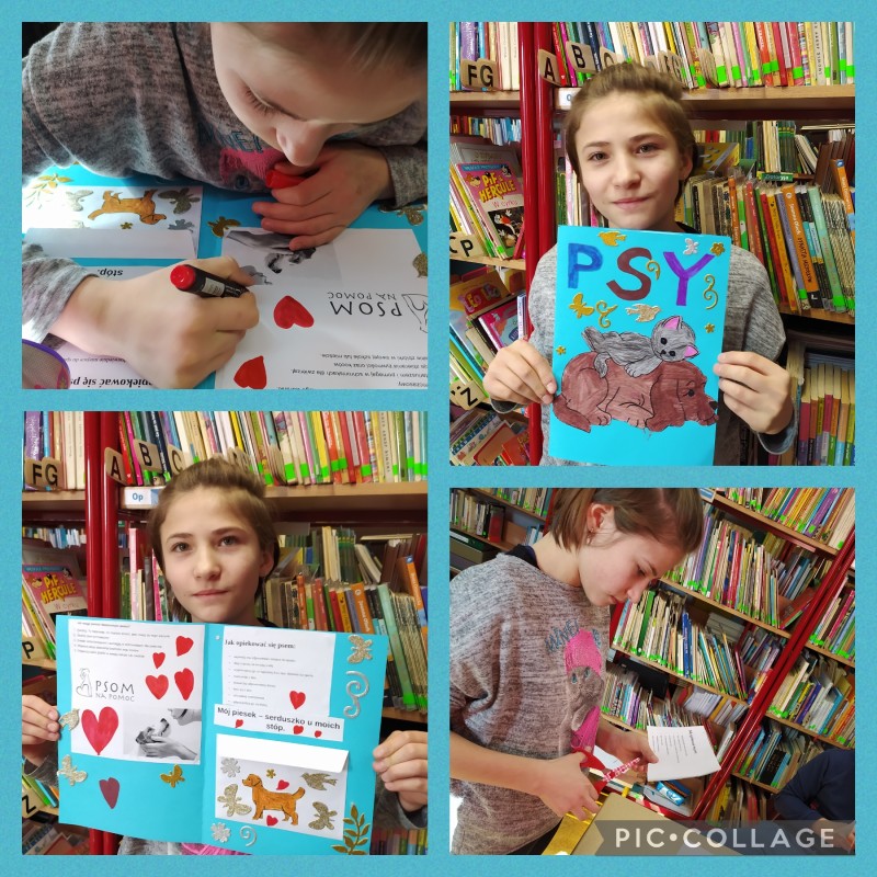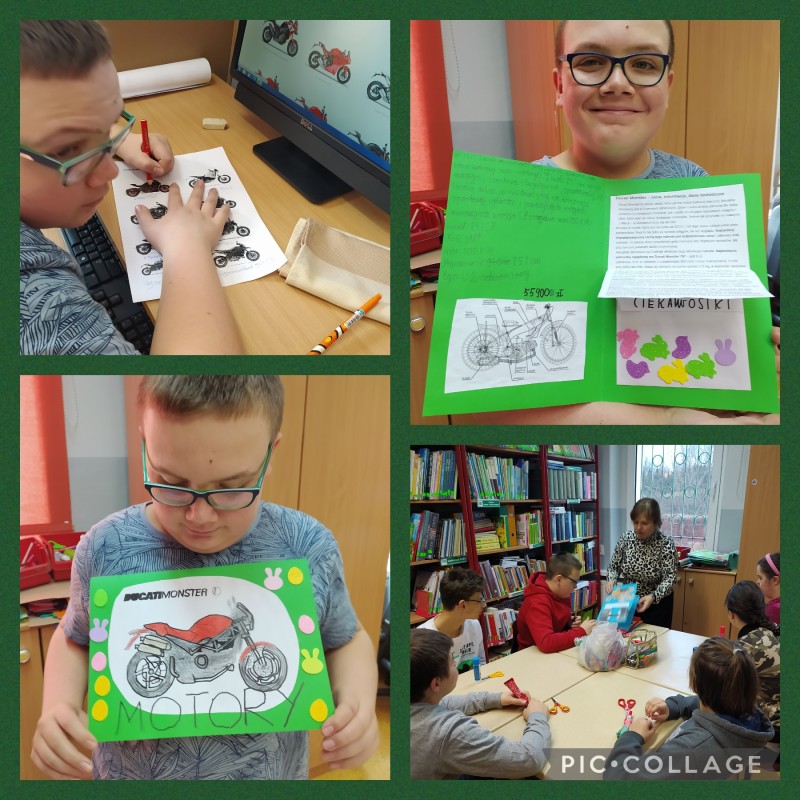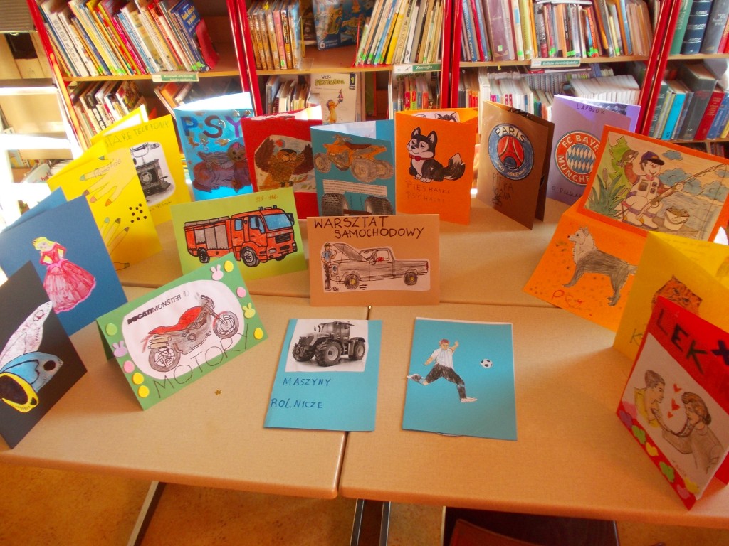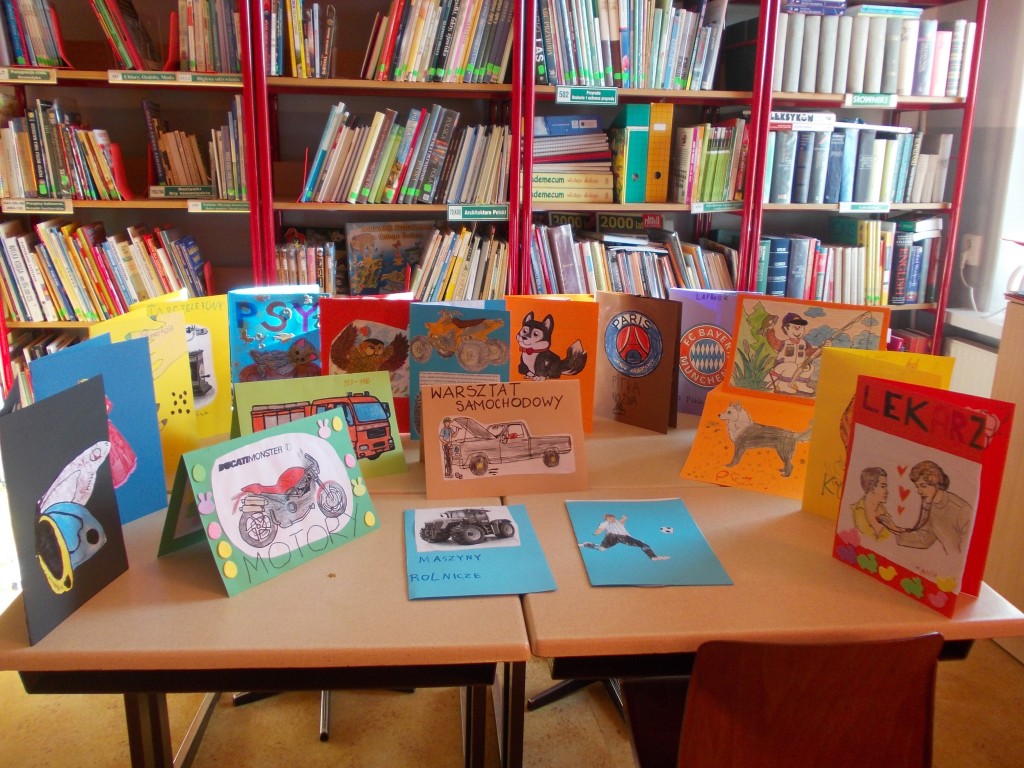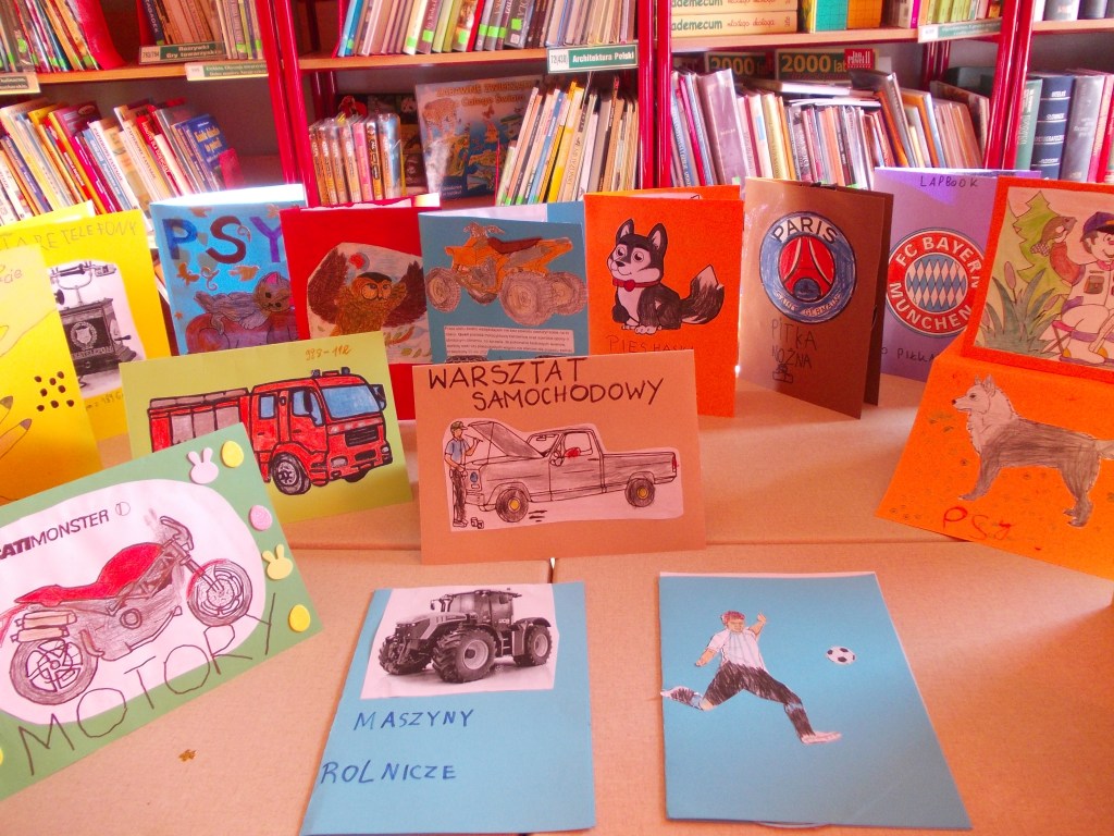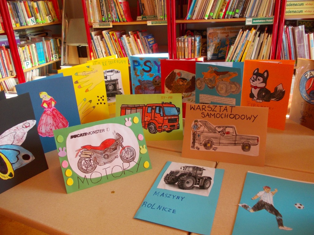 W bibliotece szkolnej na lekcjach bibliotecznych, uczniowie mogą rozwijać swoje zainteresowania, korzystając z bezpośrednich źródeł informacji, takich jak: książki, czasopisma, Internet. Jednym z atrakcyjnych sposobów rozwijania swoich pasji jest wykonanie książeczki informacyjnej, tzw. Lapbooka, przy użyciu dowolnych technik plastycznych. Uczniowie klasy 6 i 7 a, pani Lucynki mogli zaprezentować swoje pasje, wykonując przepiękne prace. Znalazły się tu książeczki o: ulubionych zwierzątkach domowych, sporcie, motoryzacji, o zawodzie lekarza. Uczniowie swoje prace wykonali z niezwykłą starannością. Książeczki są podziwiane i czytane przez inne klasy.