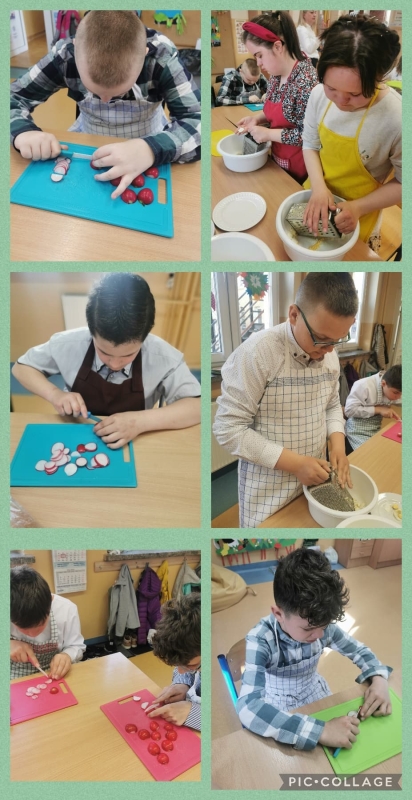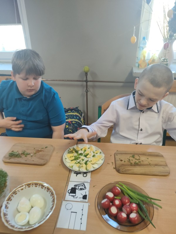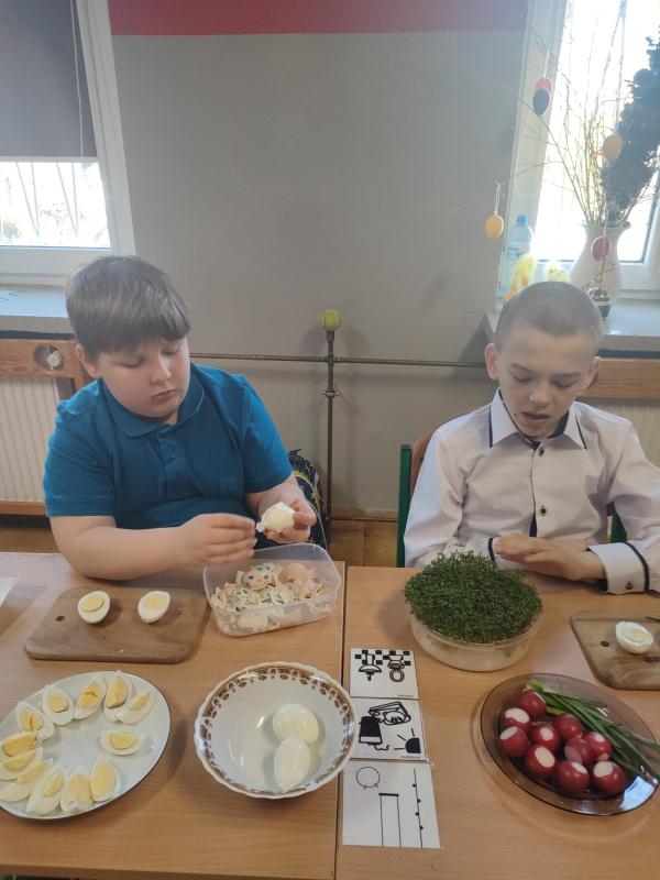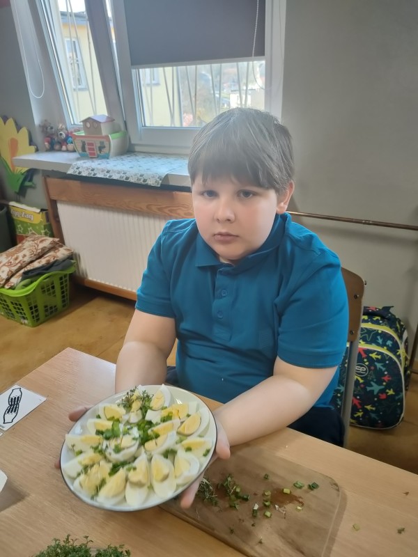 Miniony tydzień upłynął nam na rozmowach o zbliżających się Świętach Wielkanocnych. Utrwaliliśmy wiadomości o tradycjach wielkanocnych, ćwiczyliśmy sprawność manualną podczas wykonywania różnorodnych prac plastycznych, szukaliśmy też jajeczek czekoladowych 🙂 W piątek klasy a i c zorganizowały w swoich klasach symboliczne śniadania wielkanocne. Było pysznie! 🙂