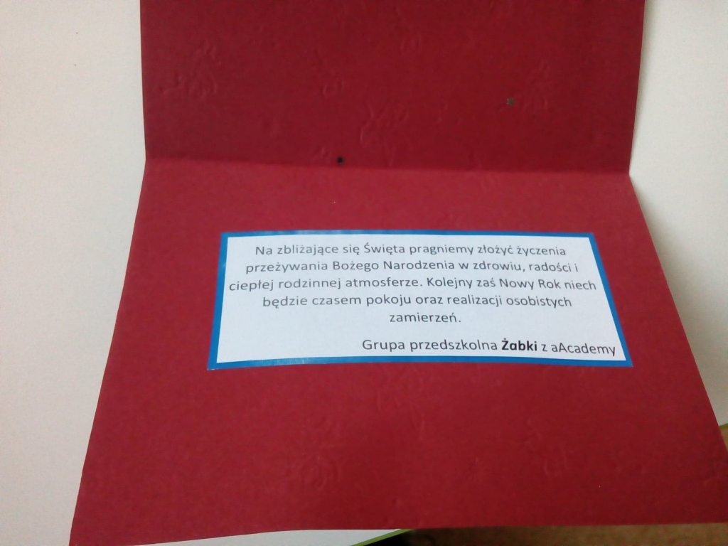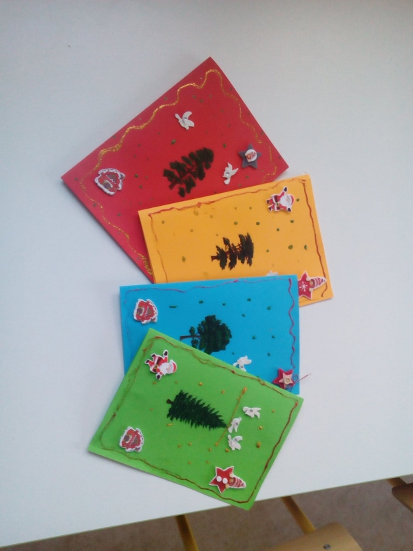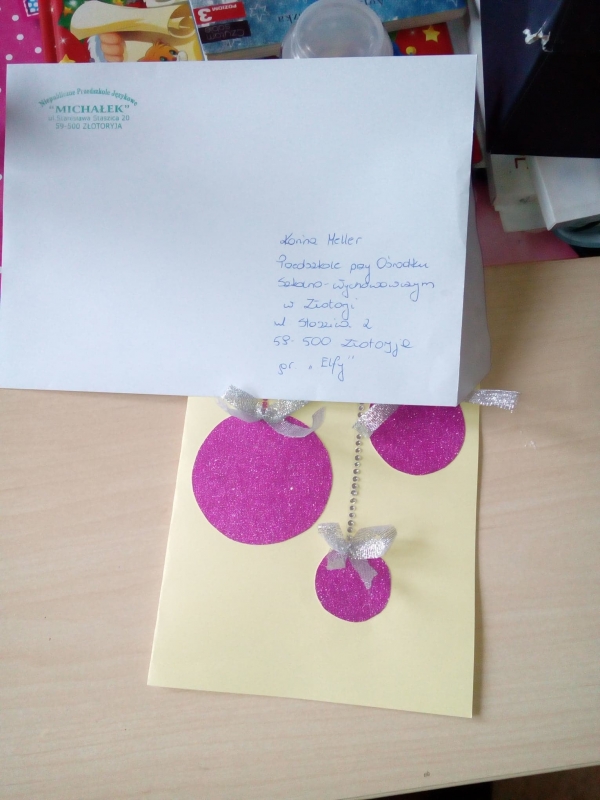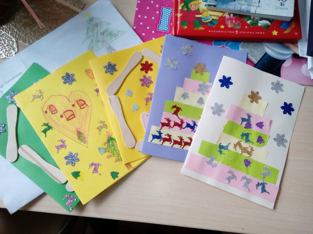 Przedszkolaki z grupy ” Elfy” przygotowały i wspólnie ze swoimi paniami wysłały piękne kartki do Przedszkola aAcademy w Katowicach, Przedszkola Integracyjnego w Lubinie oraz kilku miejskich Przedszkoli na terenie Złotoryi. Radość towarzysząca ich tworzeniu była nieoceniona!