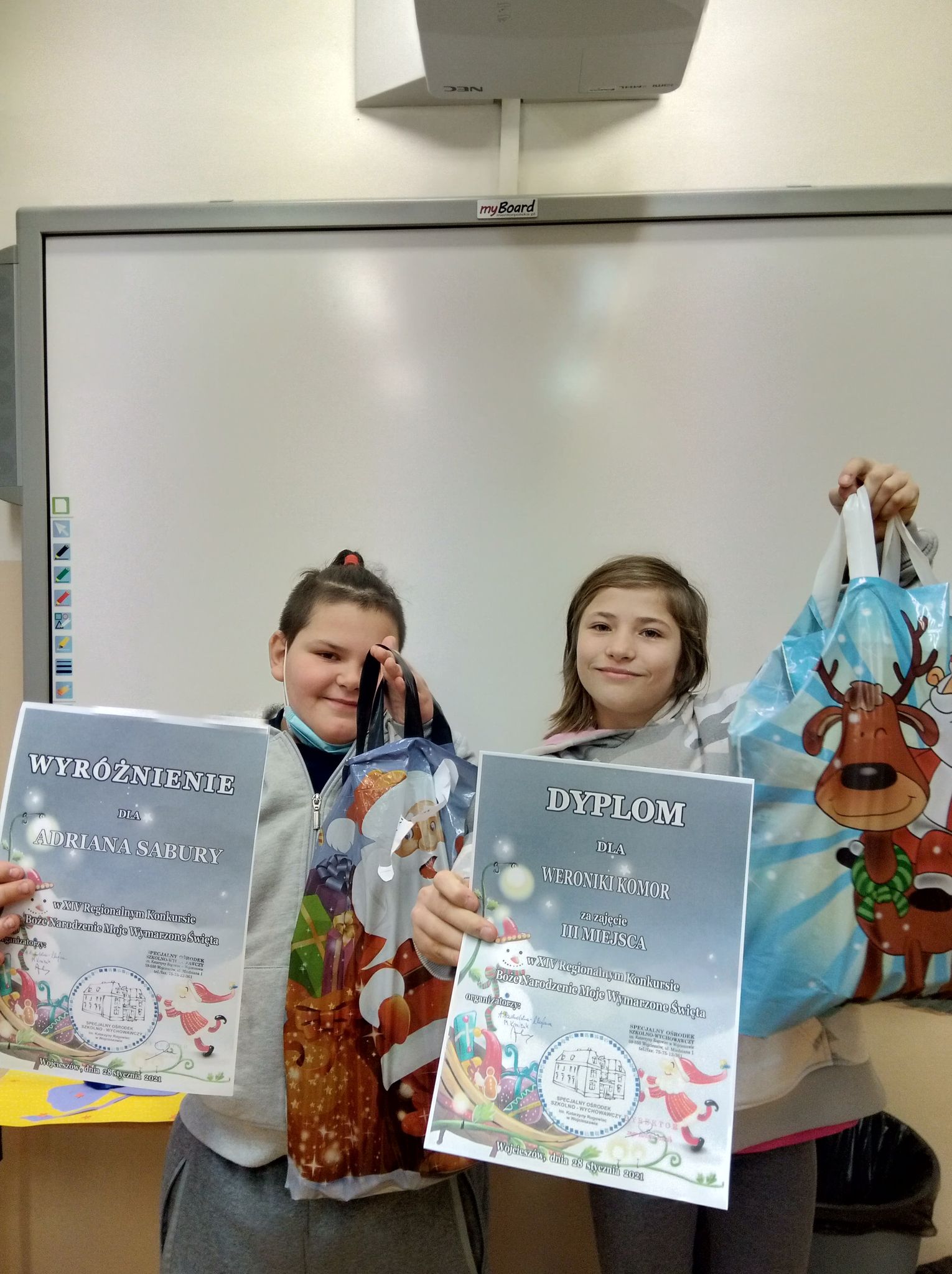 Klasa 5a wzięła udział w XIV Regionalnym Konkursie Plastycznym pn. „Boże Narodzenie – moje wymarzone święta” organizowanym przez Specjalny Ośrodek Szkolno-Wychowawczy w Wojcieszowie. Uczniowie tworzyli prace w grudniu, gdy świąteczna aura unosiła się w powietrzu. W działach naszych artystów nie brakowało św. Mikołaja, rodziny, kolorów i zimy, a wszystko zwieńczone było estetyką i precyzją.