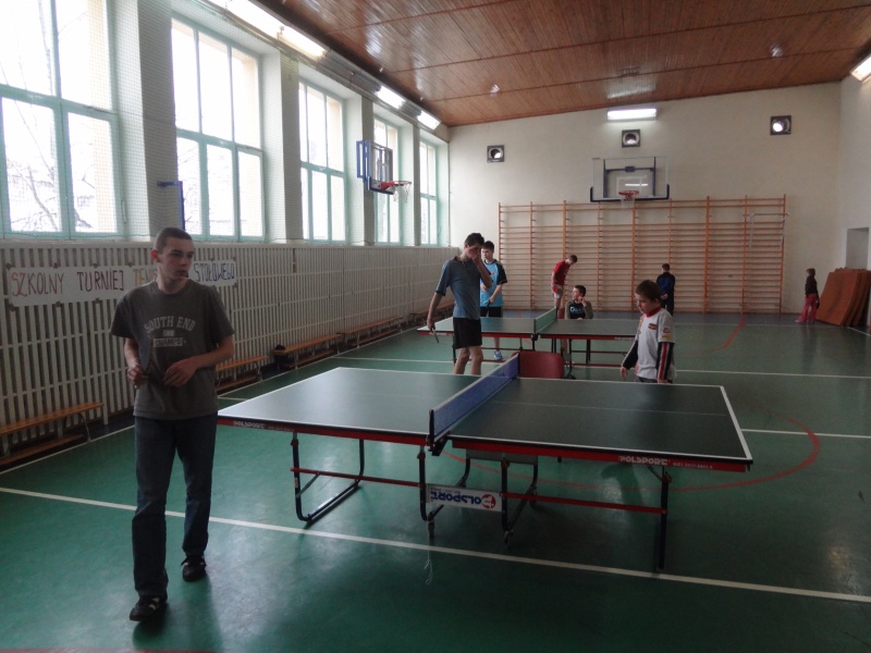 Dnia 23 stycznia zorganizowaliśmy szkolny turniej tenisa stołowego w ramach projektu edukacyjnego klasy II gimnazjum pod tytułem „Jak zorganizować szkolny turniej tenisa stołowego”. Wzięło w nim udział 13 uczniów naszej szkoły, mimo iż chętnych było znacznie więcej, lecz choroba uniemożliwiła im start.