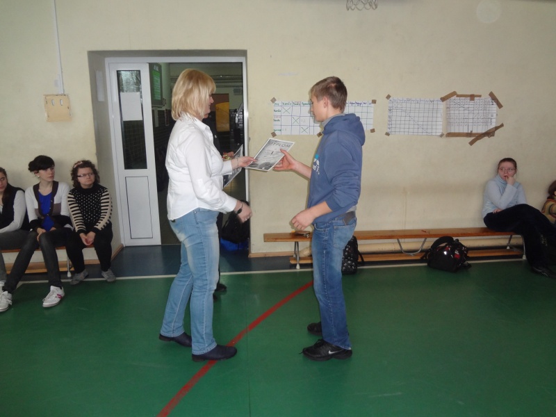 Całe zawody od początku do końca przygotowali samodzielnie nasi uczniowie, zaznajamiając się z przepisami gry, przygotowaniem regulaminu i systemu rozgrywek, zbierając listy zawodników, przygotowując dyplomy i plakaty informujące o miejscu i terminie turnieju. W trakcie zawodów pełnili funkcję sędziego.W kategorii dziewcząt I miejsce zajęła Agnieszka z klasy I gimnazjum, w kategorii chłopców młodszych Marcin z klasy szóstej, a w kategorii gimnazjum i szkoły zawodowej I miejsce Grzegorz z klasy III zawodowej. Gratulujemy zwycięzcom 🙂 !!!