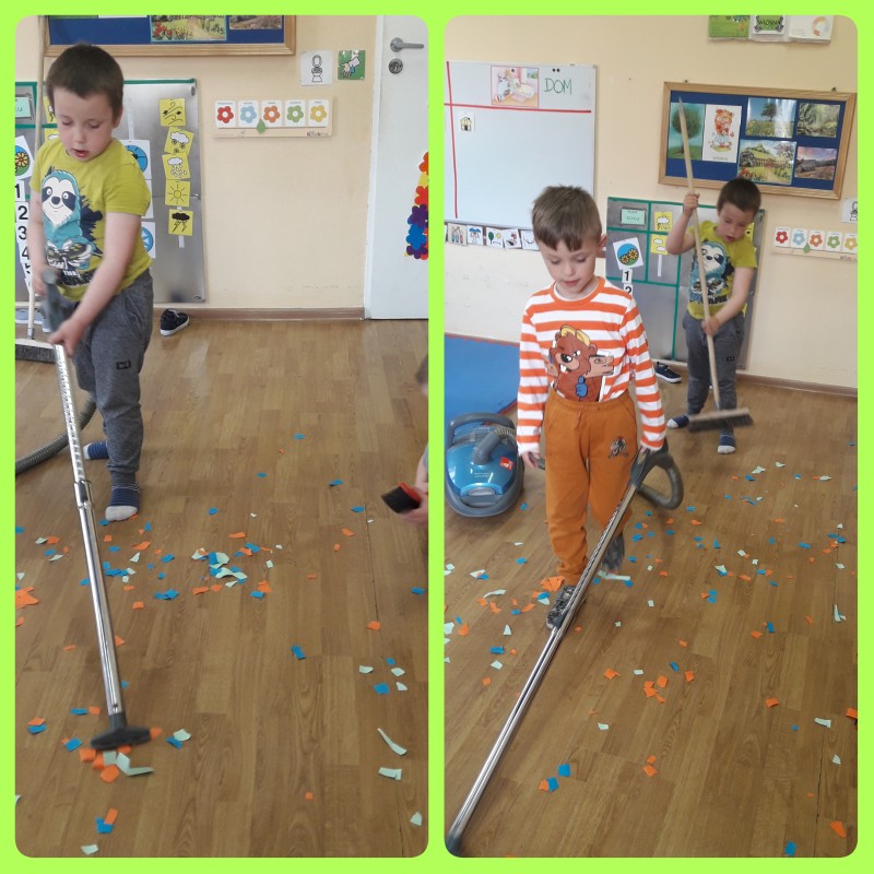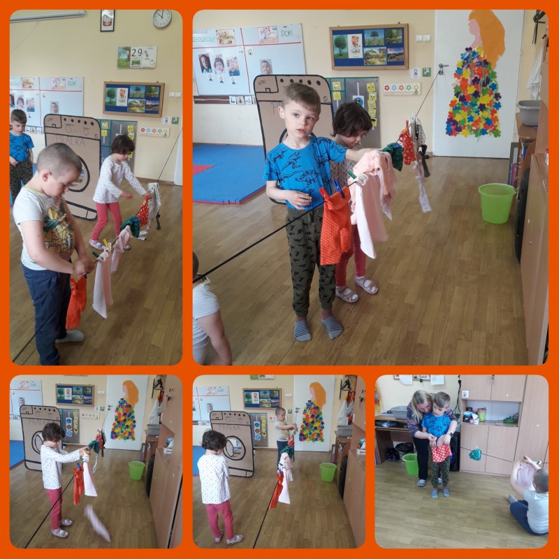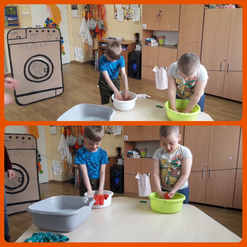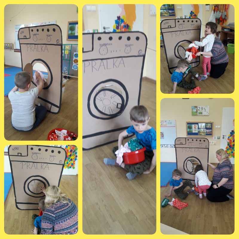 W ubiegłym tygodniu poznawaliśmy urządzenia domowe, które wykorzystujemy w naszych domach. Przy okazji rozmawialiśmy o źródłach energii, zagrożeniach płynących z niewłaściwego korzystania z elektryczności, a także o tym, jak postęp techniczny wpływa na nasze codzienne życie. „Jeżyki” zrobiły pranie ręczne, włożyły ubrania do pralki, a na koniec rozwiesiły je na sznurku przypinając klamerkami. Na koniec wspólnie posprzątaliśmy naszą salę. Usprawnialiśmy motorykę małą, wdrażaliśmy się do pracy zespołowej a także nabywaliśmy umiejętności społeczne niezbędne do codziennego życia. Trzeba przyznać, że „ Jeżyki” to pracusie na medal.