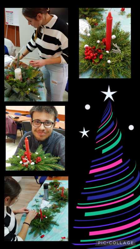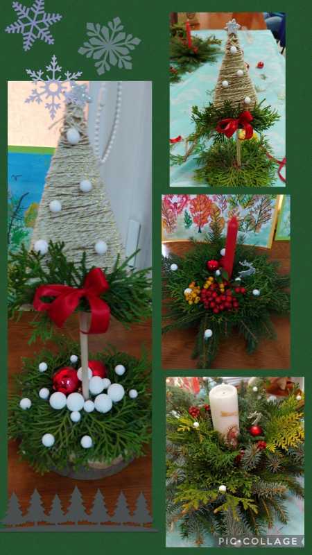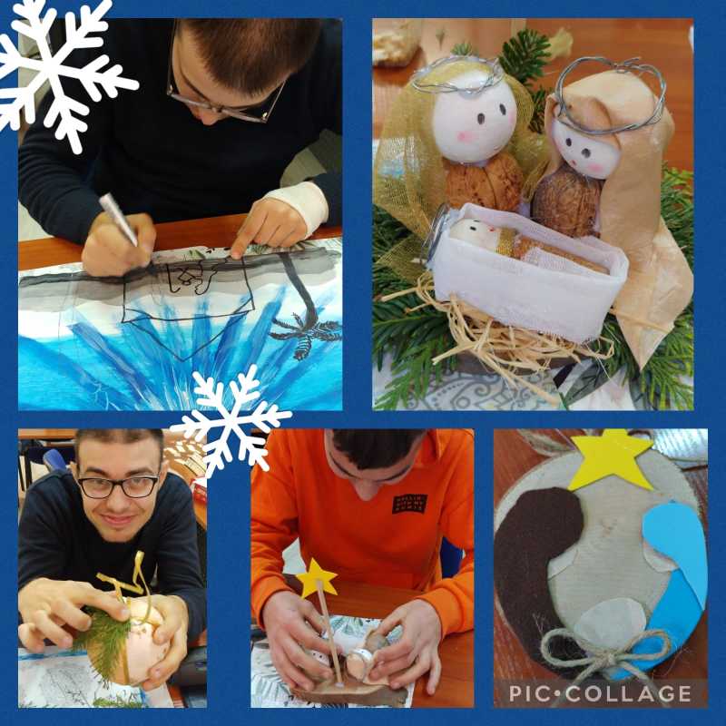 Okres przedświąteczny to pracowity czas dla uczniów klas PP. Podczas zajęć rozwijających kreatywność uczniowie wykonywali stroiki z materiału przyrodniczego. Uczyli się w jaki sposób przygotować materiały, stworzyć kompozycję, a także w ładny sposób ją przystroić, aby była ozdobą na stole w rodzinnym domu. Wykorzystując dostępne materiały, inspirując się zdjęciami w Internecie oraz własną wyobraźnią wykonali stroiki, a także szopki bożonarodzeniowe.