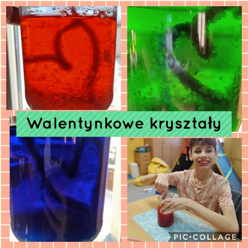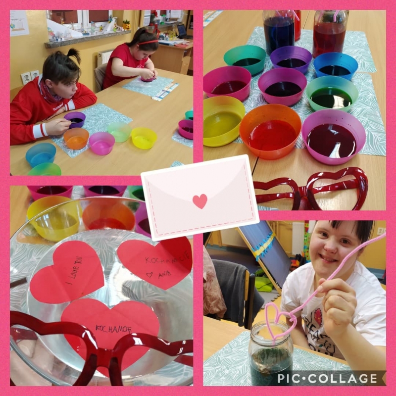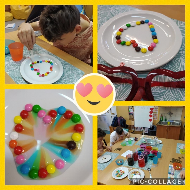 Dzisiejszy dzień upłynął w klasie 6a w rytmie bijących, zakochanych serc. Oprócz zapoznania się z historią walentynek i po prezentacji „Czym jest miłość?” rozwiązaliśmy zagadki z miłością w tle, ale głównym zadaniem uczniów z 6a było poznanie kolorów miłości w różnorodnych doświadczeniach. Rozpoczęliśmy hodowlę walentynkowych kryształów, odszukiwaliśmy kolory miłości w cukierkach, pompowaliśmy serduszkowe balony gazem powstałym w butelce, malowaliśmy na soli oraz przesłaliśmy pływające walentynki dla naszych najbliższych. Pamiętajcie, miłość kwitnie wokół nas…