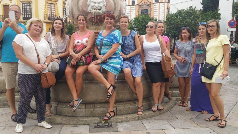 Sama Sewilla to bardzo przyjazne miasto z mnóstwem zabytków wartych zwiedzenia. W prawdzie mieliśmy tylko wolne późne popołudnia, ale  znaleźliśmy czas na wycieczki. Najbardziej zauroczył mnie Plac Hiszpański – niestety nie spotkałam tam Krychowiaka. Atrakcją hiszpańską oczywiście było flamenco show i nauka podstawowych kroków. Postaram sie razem z koleżankami nauczyć nasze szkolne dzieciaki, ale nie będzie to takie łatwe.Trudniejszym okazała się lekcja gry na kastanietach – wszystkie sobie kupiłyśmy, więc kolejne wyzwanie przed nami! Efekty będą widoczne na Dniu hiszpańskim, który zorganizujemy w naszej szkole.