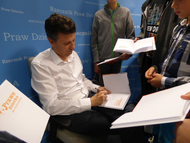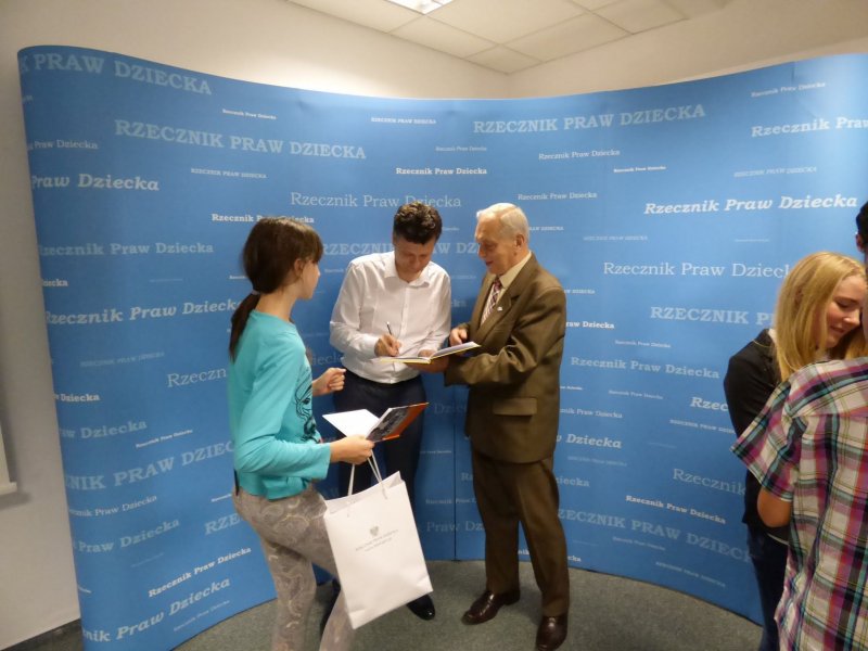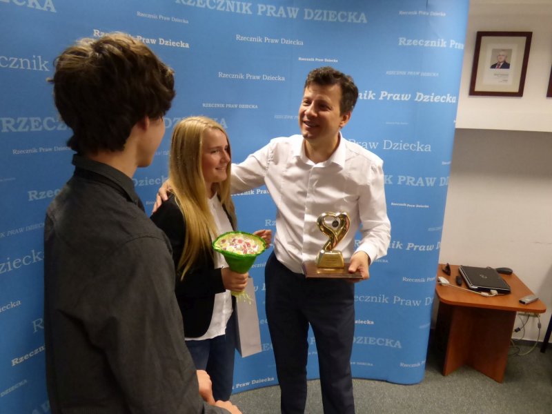Podczas wycieczki do Warszawy zorganizowanej przez Towarzystwo Przyjaciół Dzieci w Legnicy delegacja uczniów naszego Ośrodka miała okazję spotkać się z Rzecznikiem Praw Dziecka RP, Panem Markiem Michalakiem. Dowiedzieliśmy się jak działa urząd Rzecznika Praw Dziecka. Ciekawa też była dyskusja o prawach dziecka.Rzecznik zapoznał nas z książką Joanny Olech pt.„Mam prawo i nie zawaham się go użyć”, która nawiązuje do praw dziecka, ich realizacji oraz poszanowania. Wszyscy uczestnicy otrzymali zestawy edukacyjne, a panu Markowi Michalakowi przekazaliśmy symboliczną statuetkę “Serce za serce”.