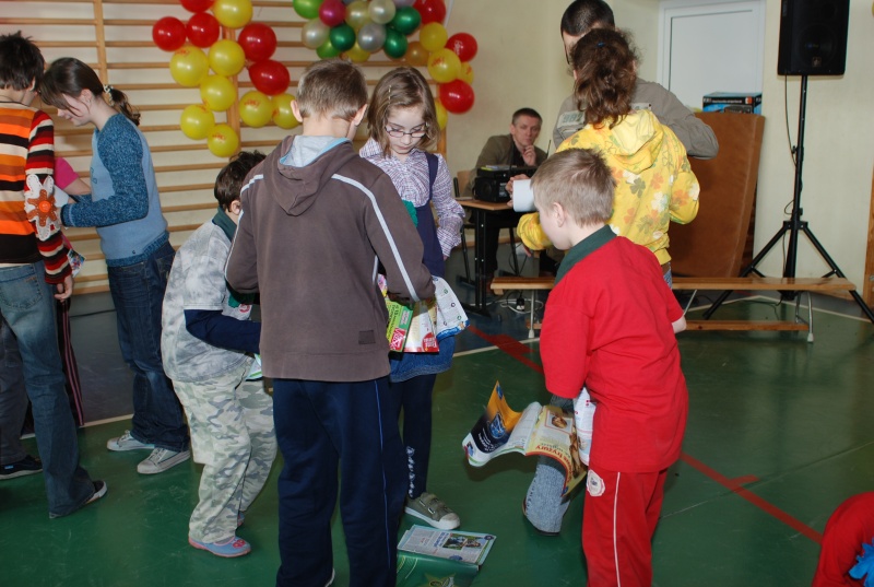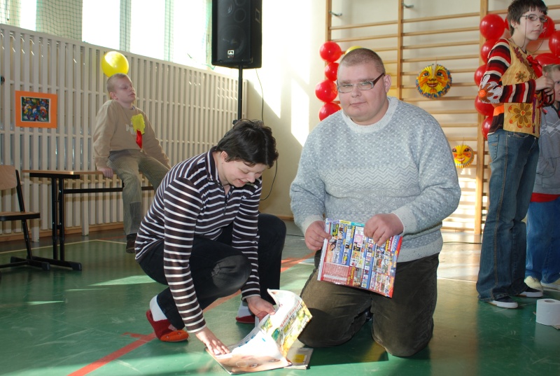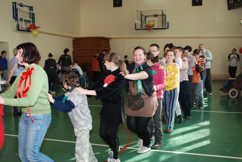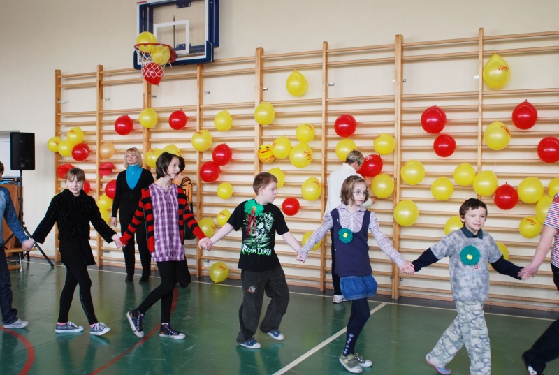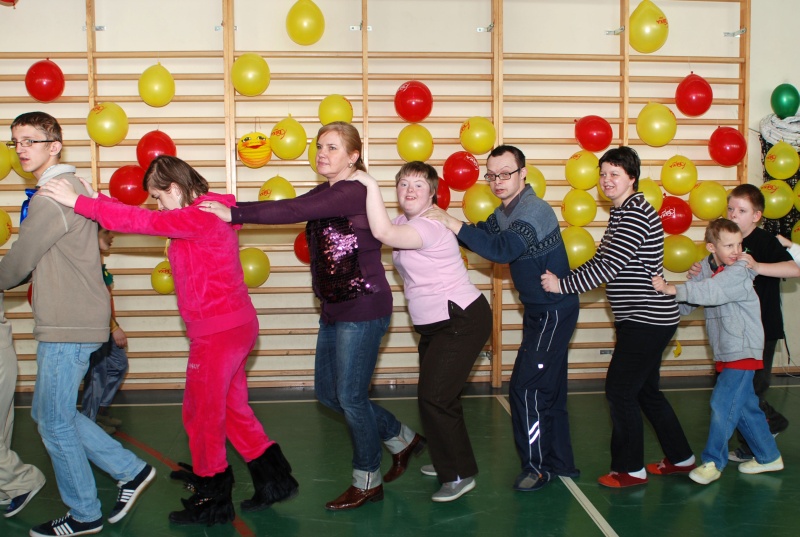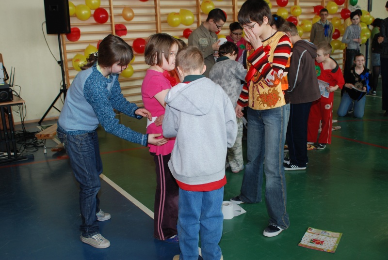 W dniu 3 marca 2011 w naszej szkole odbył się kotylionowy bal karnawałowy dla uczniów szkoły podstawowej, zespołów edukacyjno-terapeutycznych, zespołów rewalidacyjno-wychowawczych i nauczania indywidualnego. Prawie każdy uczeń przygotował na imprezę kotylion w wybranym przez siebie kolorze: czerwonym, niebieskim lub zielonym. Przygotowane konkursy do trzech znanych bajek: o smerfach, królewnie Śnieżce i Kubusiu Puchatku poprzedzała piosenka Ryszarda Rynkowskiego „Jedzie pociąg z daleka”. Z każdej grupy kotylionów uczniowie przystępowali do rywalizacji. Było to np. układanie obrazka z części, oddzielanie grochu i pieprzu, dmuchanie balonów na czas itp. Wszyscy bawili się wspaniale ! Do zobaczenia za rok!!!