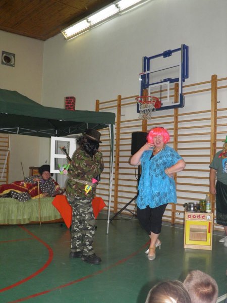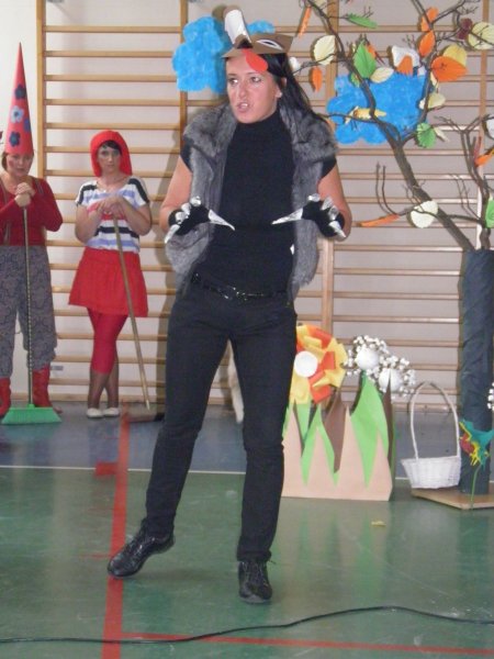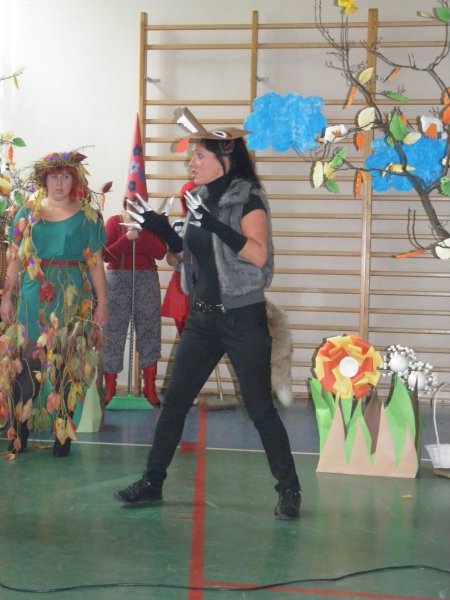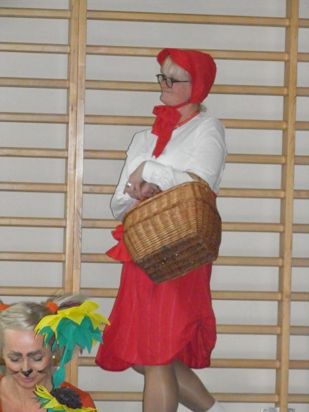 Sceniczna odsłona opowieści o małej dziewczynce, która podczas drogi do chorej Babci spotkała złego Wilka. Jej ufność zesłała niebezpieczeństwo, zarówno na nią, jak i na jej babcię .Na szczęście jak na dobrą bajkę przystało, nie zabrakło osób gotowych nieść pomoc, za sprawą których doszło do finalnego „happy endu!!!Wspaniała sztuka i kreacje aktorskie naszych nauczycieli sprawiły ,że na widowni pojawiły się rumieńce i uśmiechy.